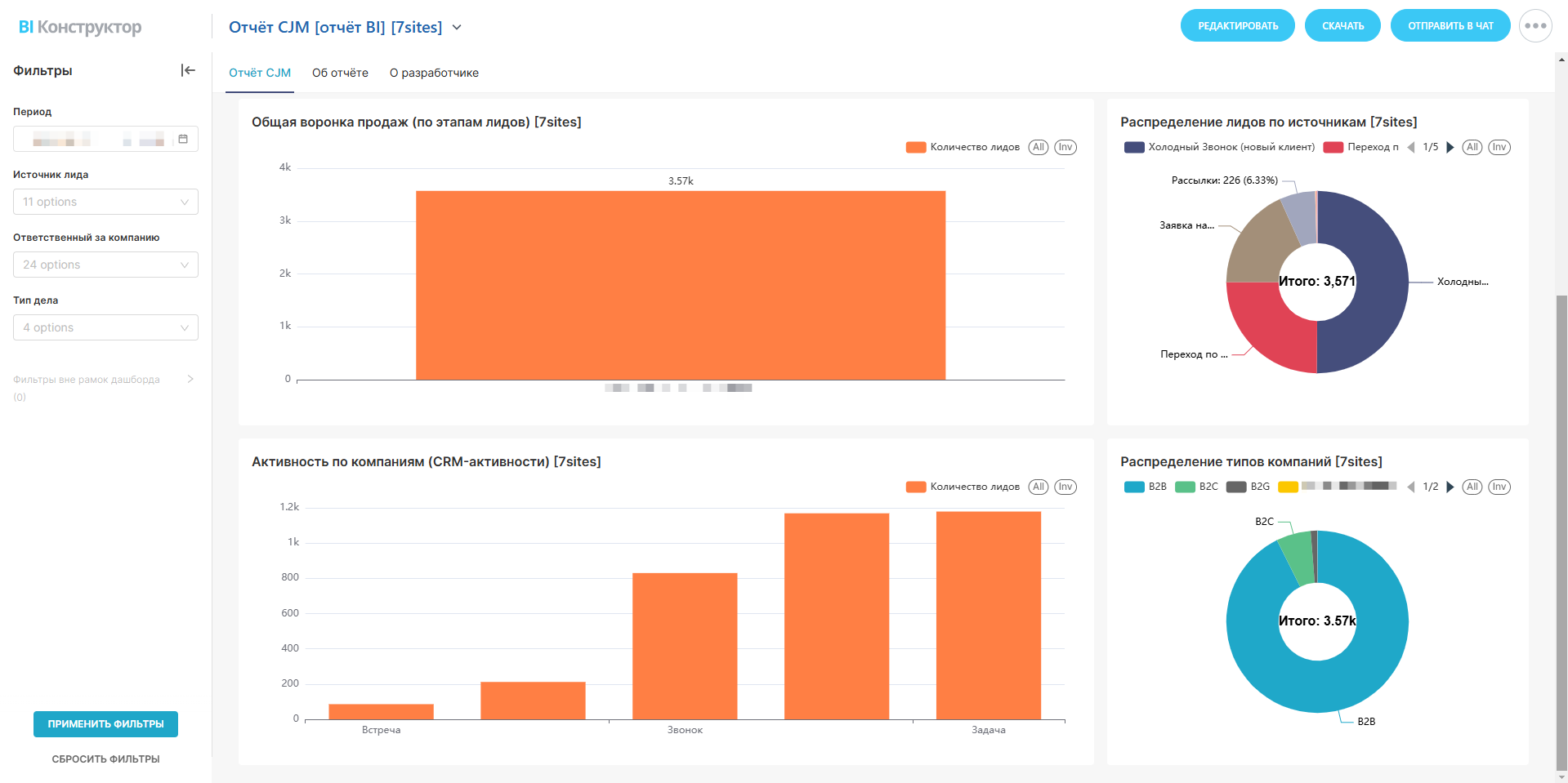Менеджер может посмотреть, что из соц. сетей приходит много клиентов, но они «застревают» на этапе переговоров. Значит, нужно улучшить работу с такими лидами или обучить команду.
