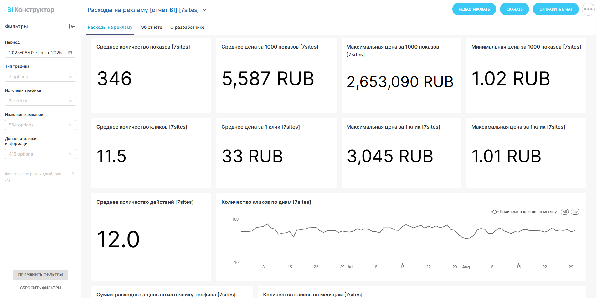 Отчёт содержит все ключевые метрики для полного контроля рекламного бюджета: