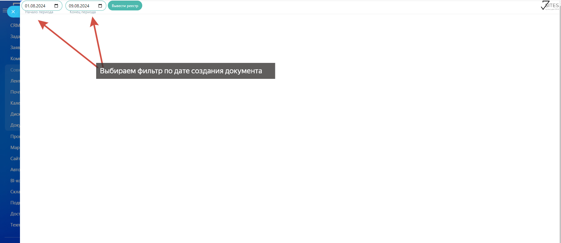 - Фильтрация либо по дате создания, либо по дате обновления документа