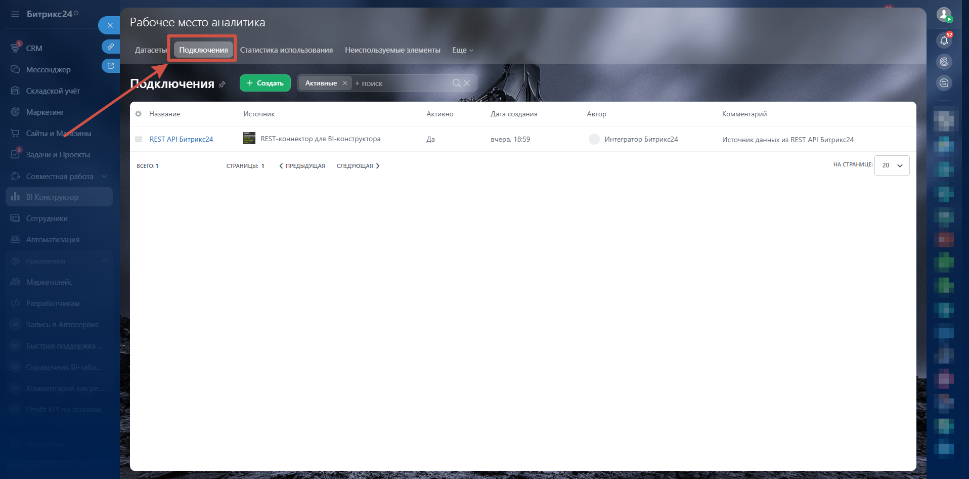 REST-коннектор решает эту проблему. Это универсальная система, которая позволяет подключать к BI-конструктору любые данные, доступные через REST API Битрикс24, и использовать их в отчётах и дашбордах.