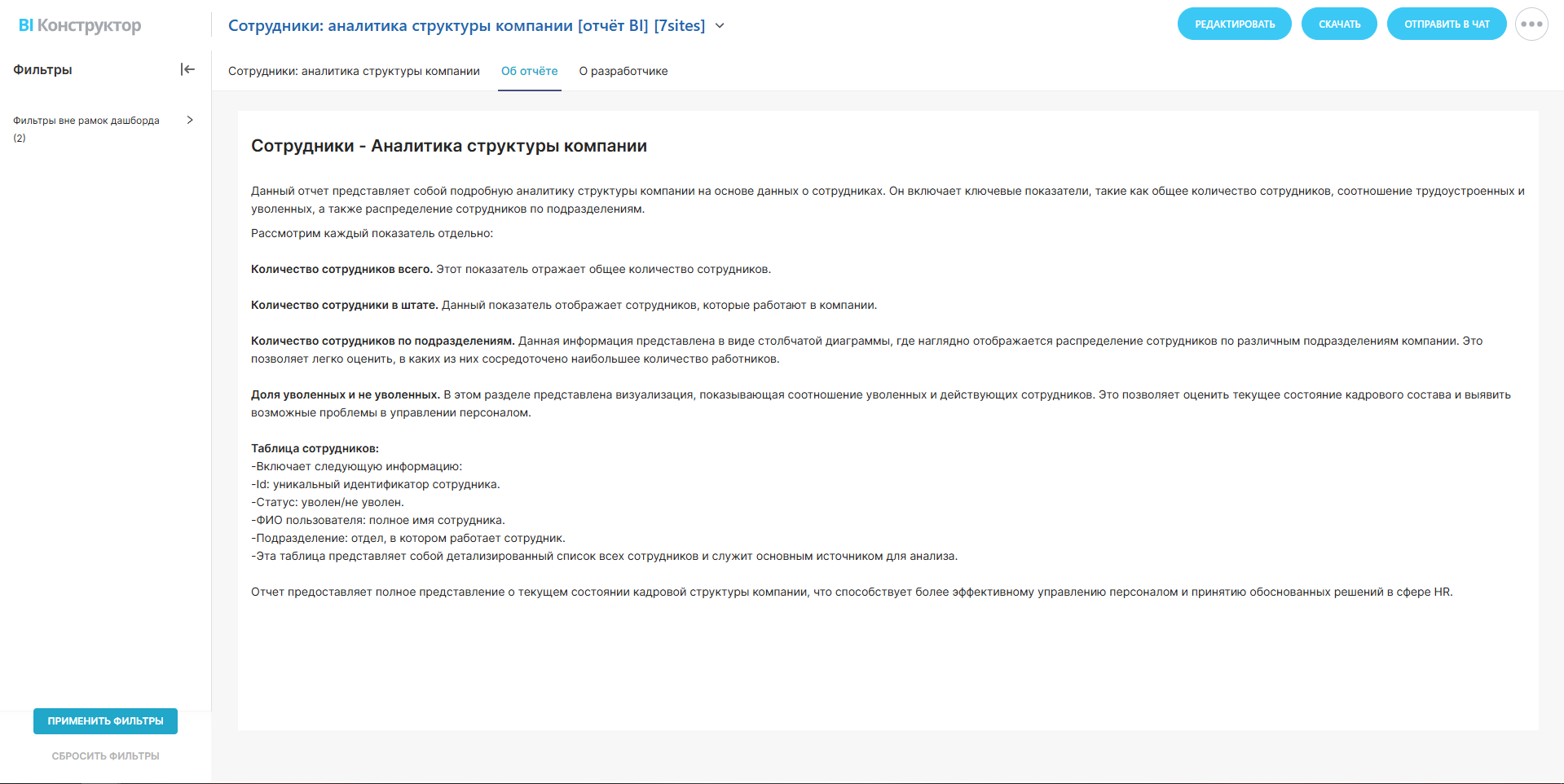 Отчет предоставляет полное представление о текущем состоянии кадровой структуры компании, что способствует более эффективному управлению персоналом и принятию обоснованных решений в сфере HR.