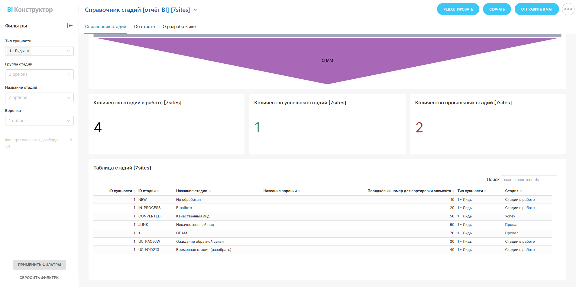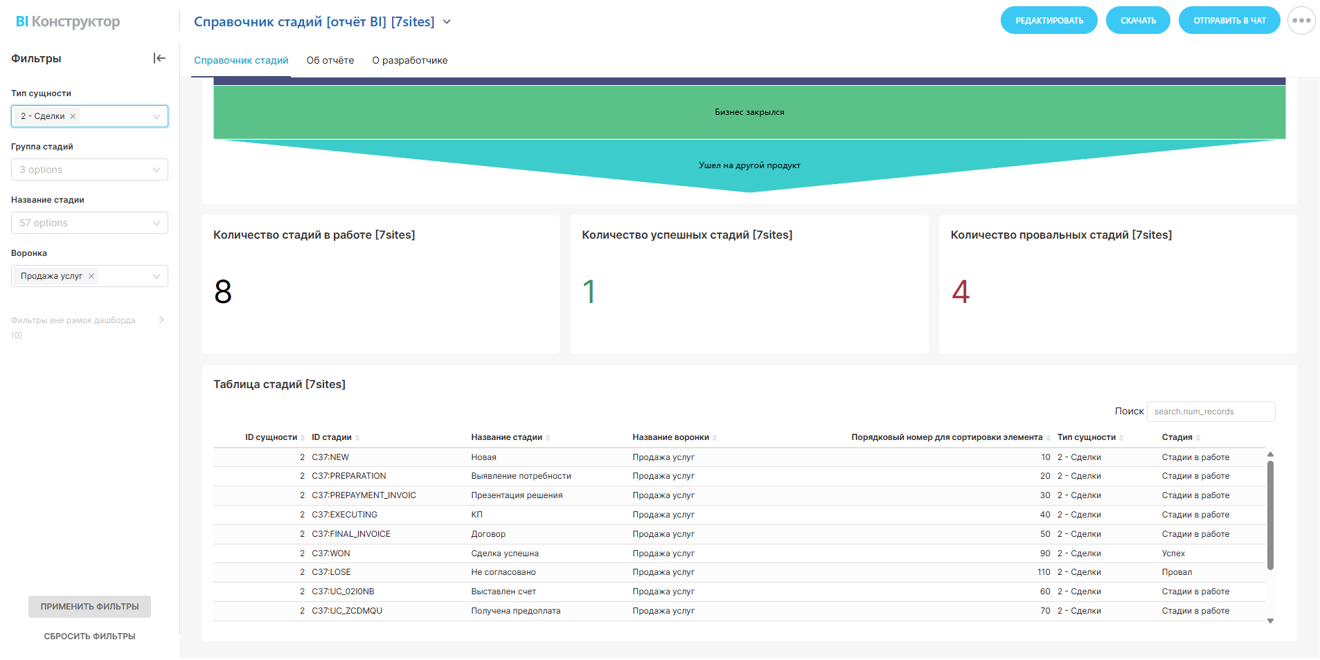 Позволяет показывать стадии в более удобном интерфейсе BI-конструктора