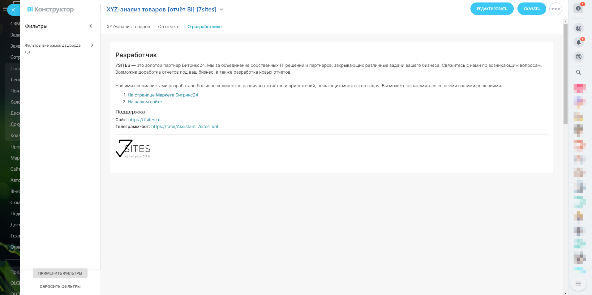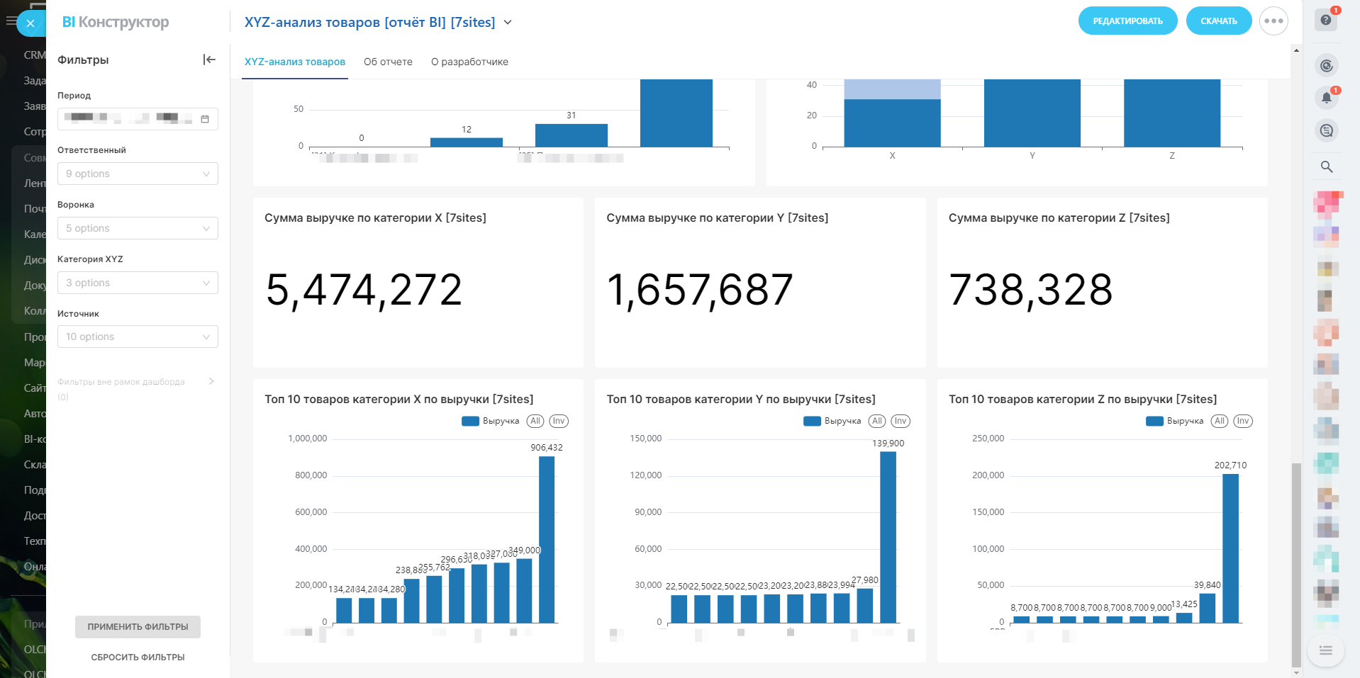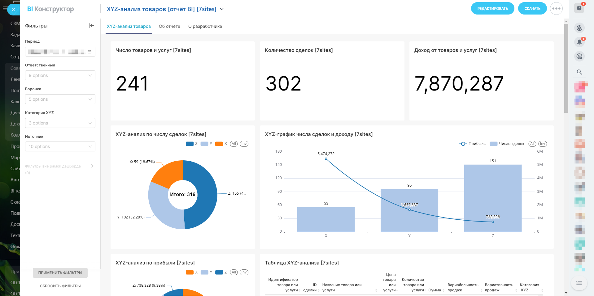 Вас когда-нибудь интересовал глубокий анализ ваших товаров и услуг? Представляем вам уникальный отчёт в BI-конструкторе Битрикс24 — "XYZ-анализ товаров". Этот отчёт станет вашим незаменимым помощником в принятии решений и оптимизации бизнес-процессов!