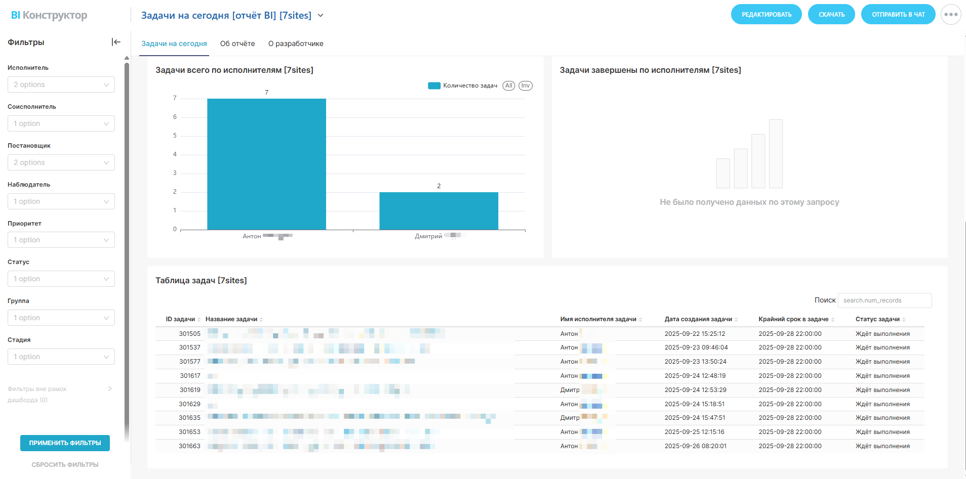 Задачи на сегодня [отчёт BI]