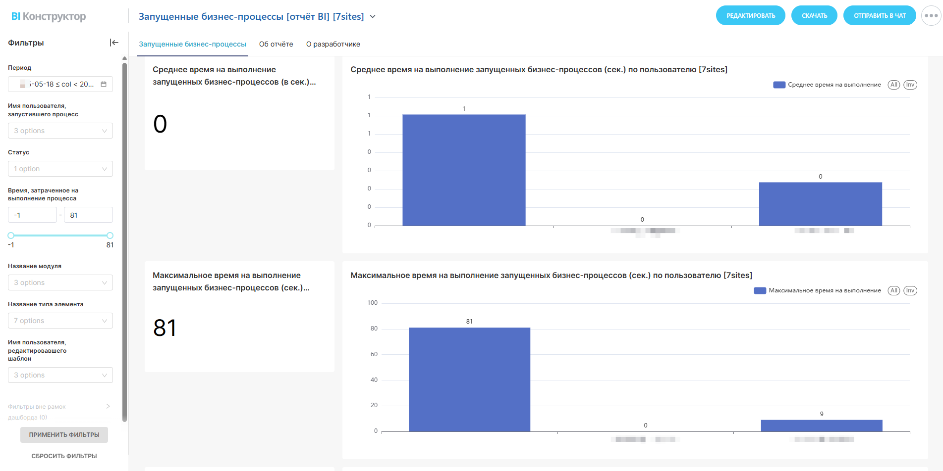 [*]Среднее время на выполнение запущенных бизнес-процессов (сек.) по пользователю