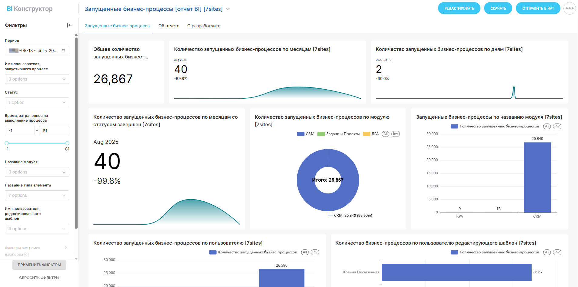 [*]Количество запущенных бизнес-процессов по модулю