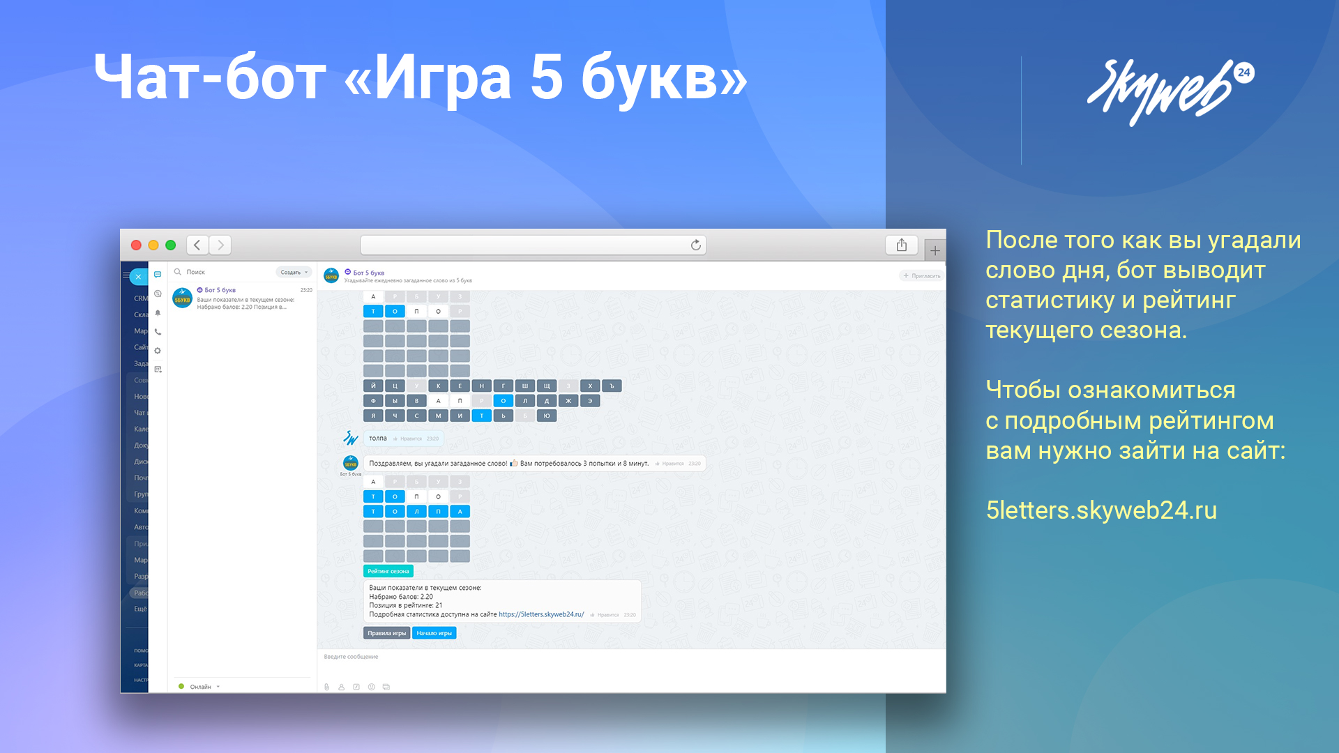 Рейтинг доступен по адресу - https://5letters.skyweb24.ru/