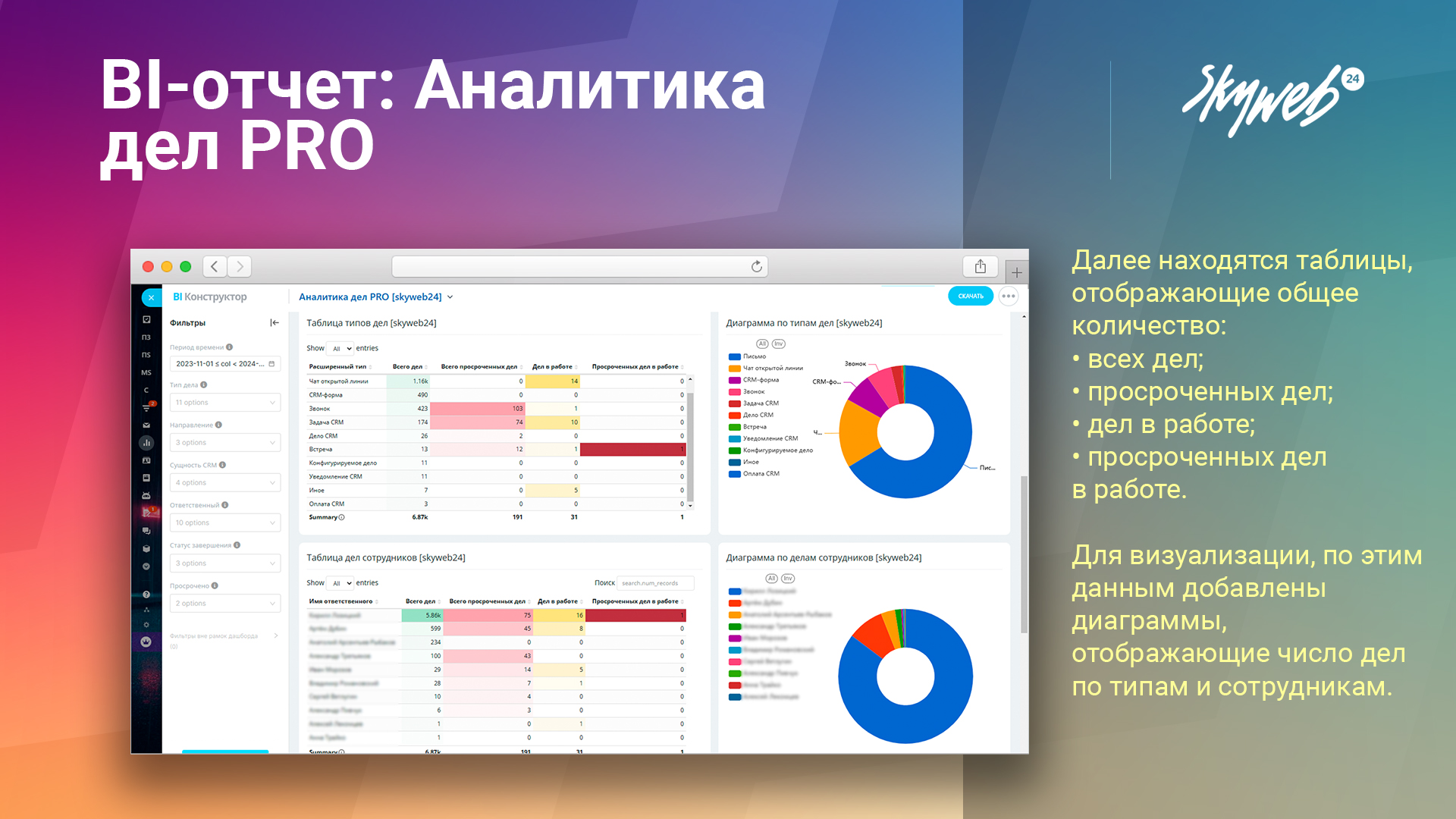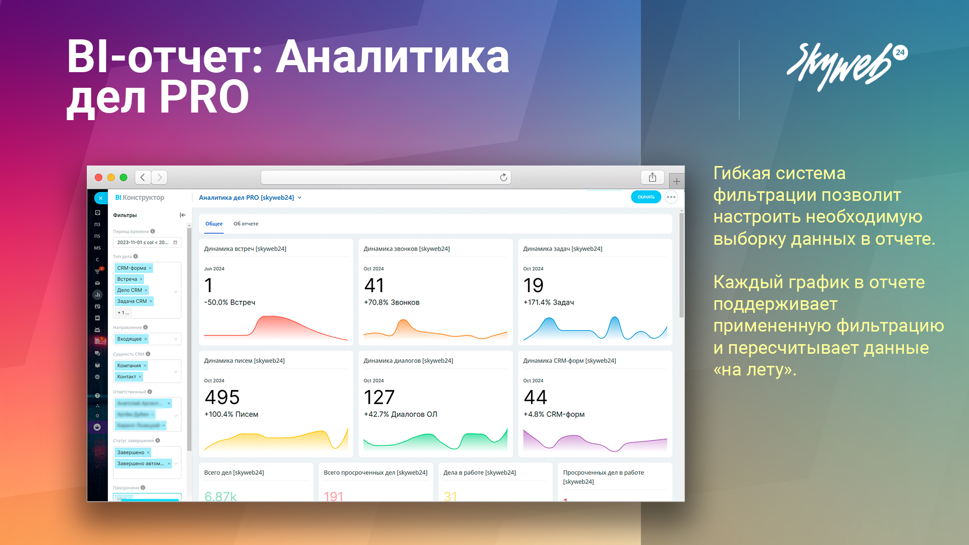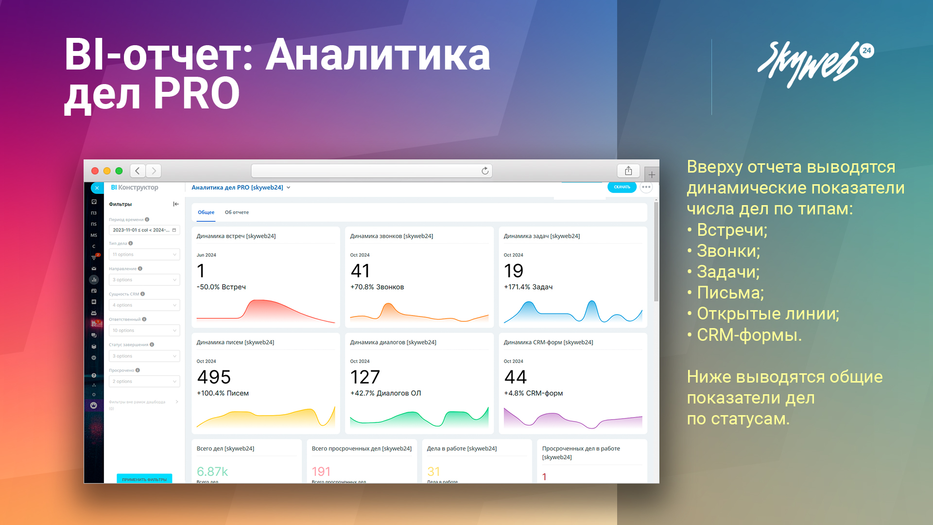 BI-отчёты от Skyweb24 — простая аналитика, реальные решения. Установите отчет и управляйте делами в CRM на новом уровне.