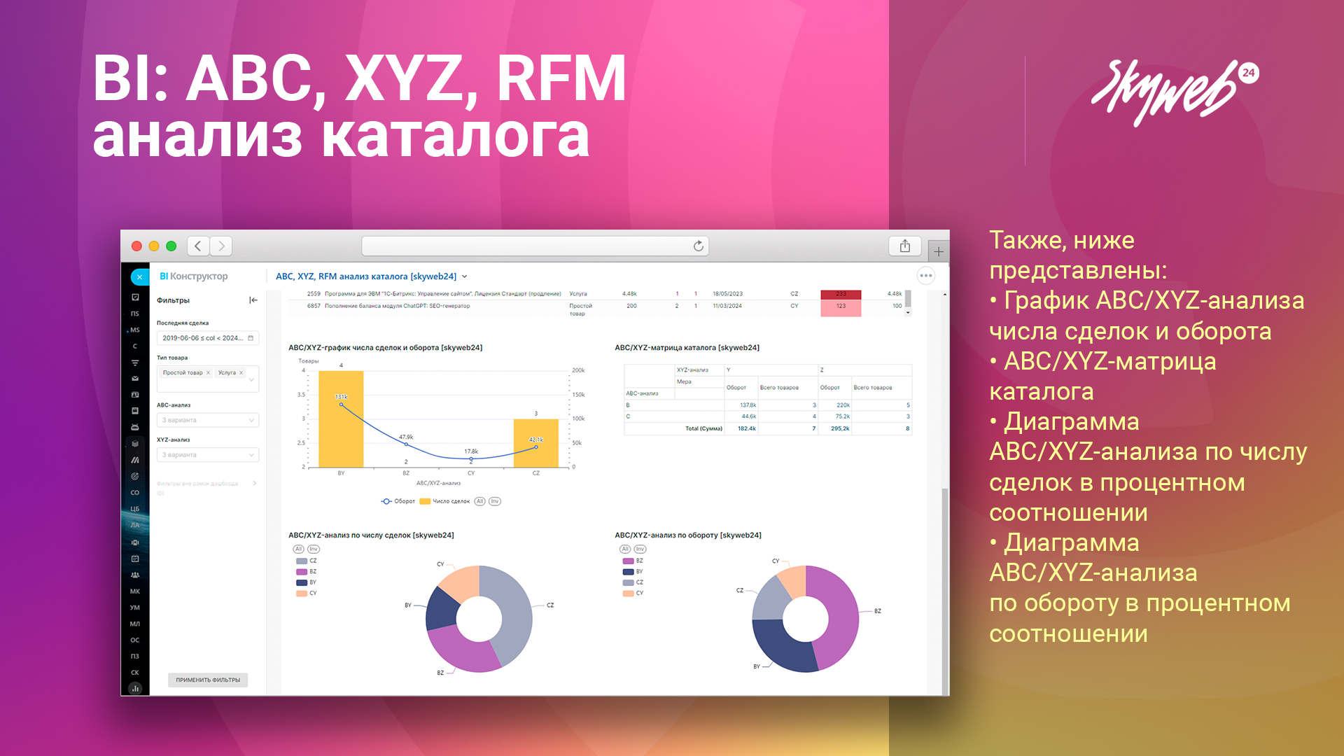 - Матрица анализа: ABC/XYZ-графики по числу сделок и обороту