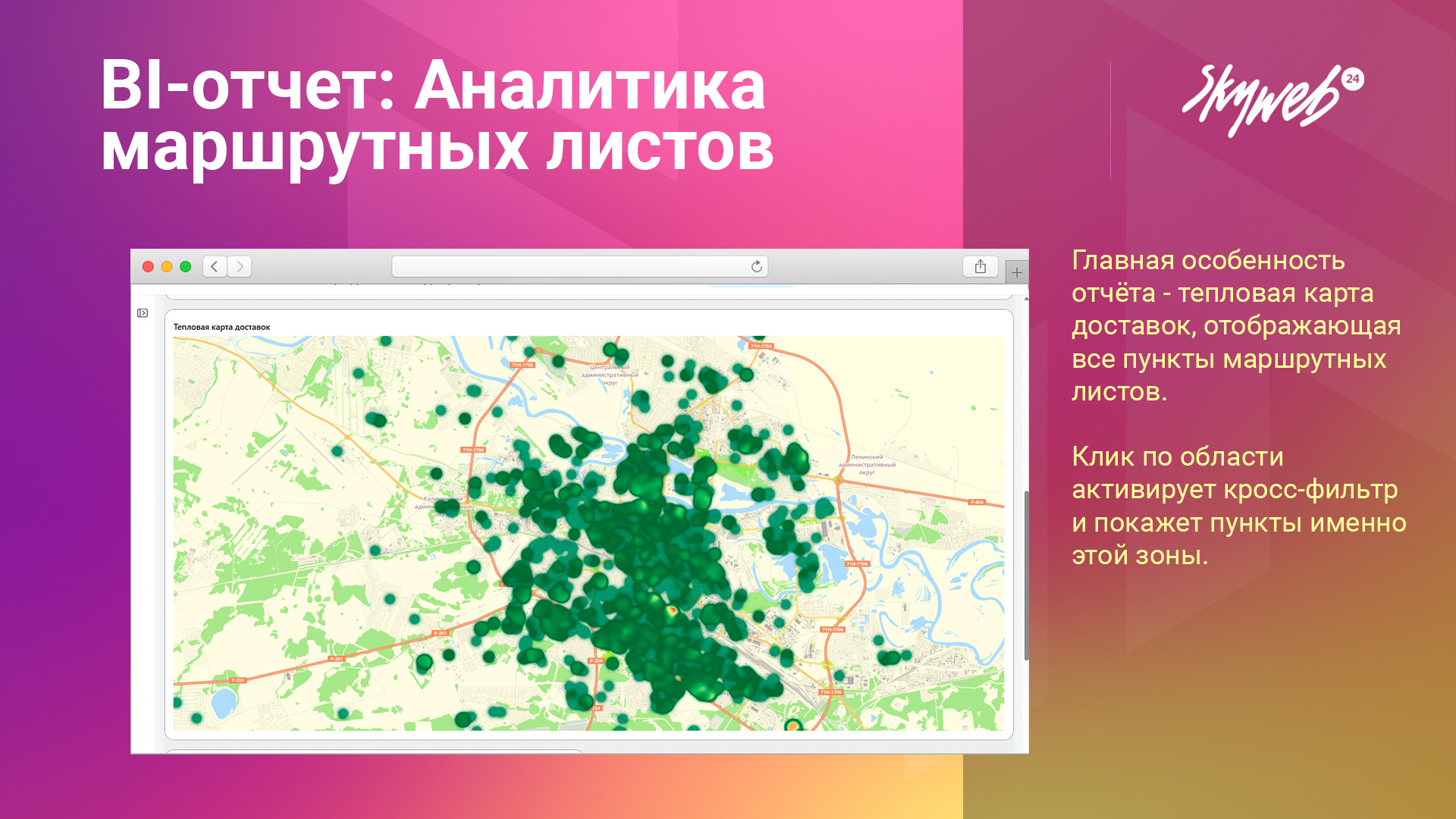 - Тепловая карта доставок - визуализация распределения на карте.