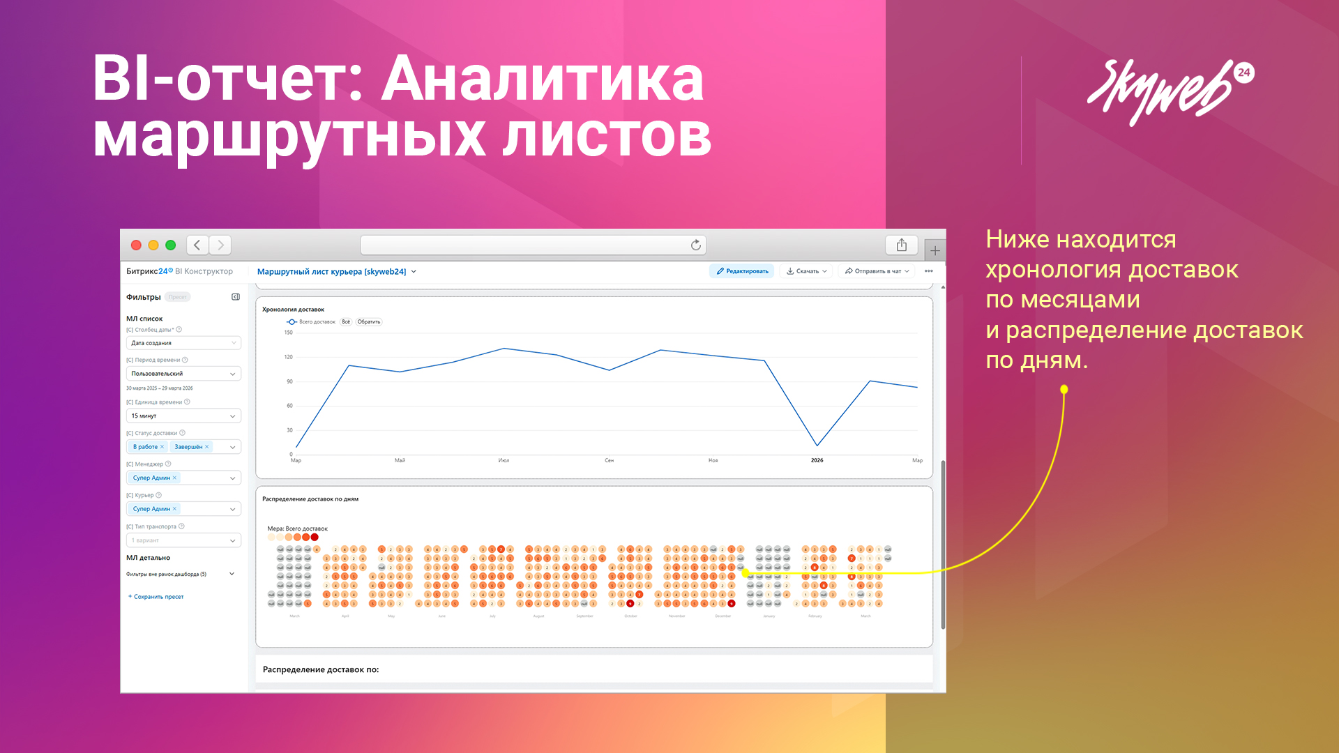 - 27 графиков, таблиц и диаграмм для комплексного анализа доставок.