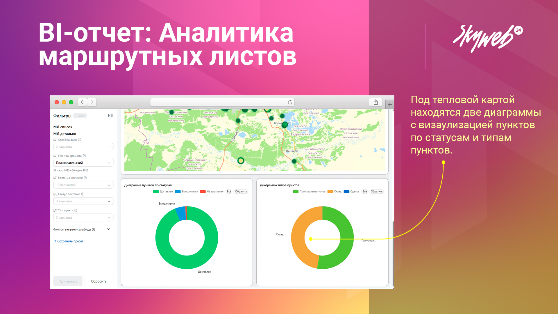 - Уникальная тепловая карта пунктов маршрутных листов.