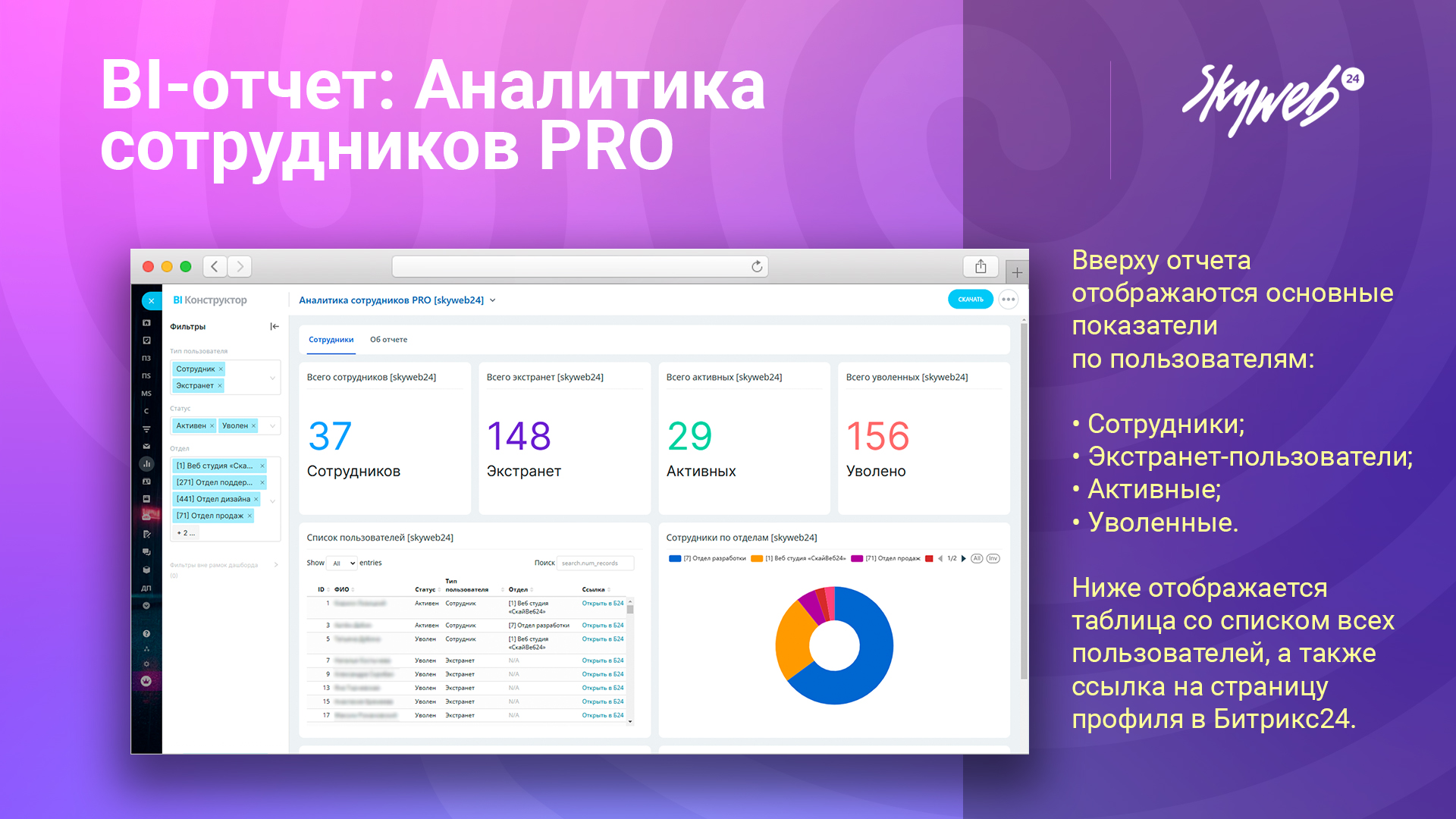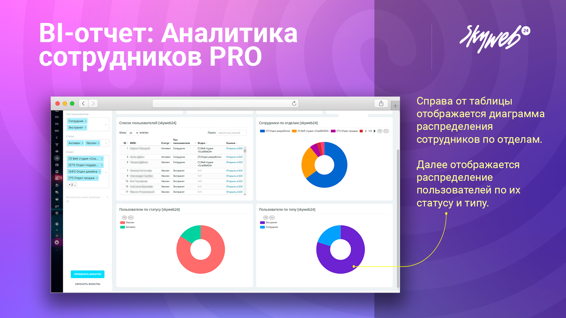 BI-отчёты от Skyweb24 — это не просто графики, а управляемые данные. Установите отчет и поймите, как устроена ваша команда — наглядно, просто, эффективно.