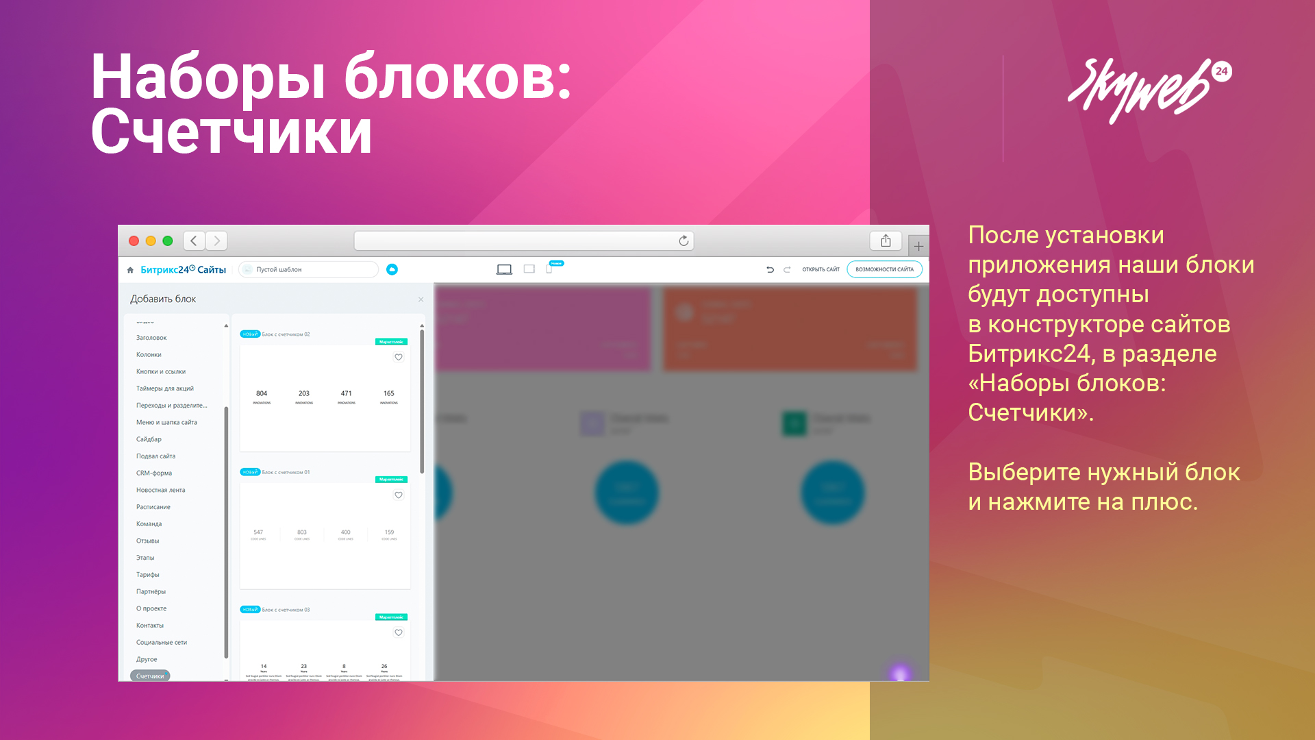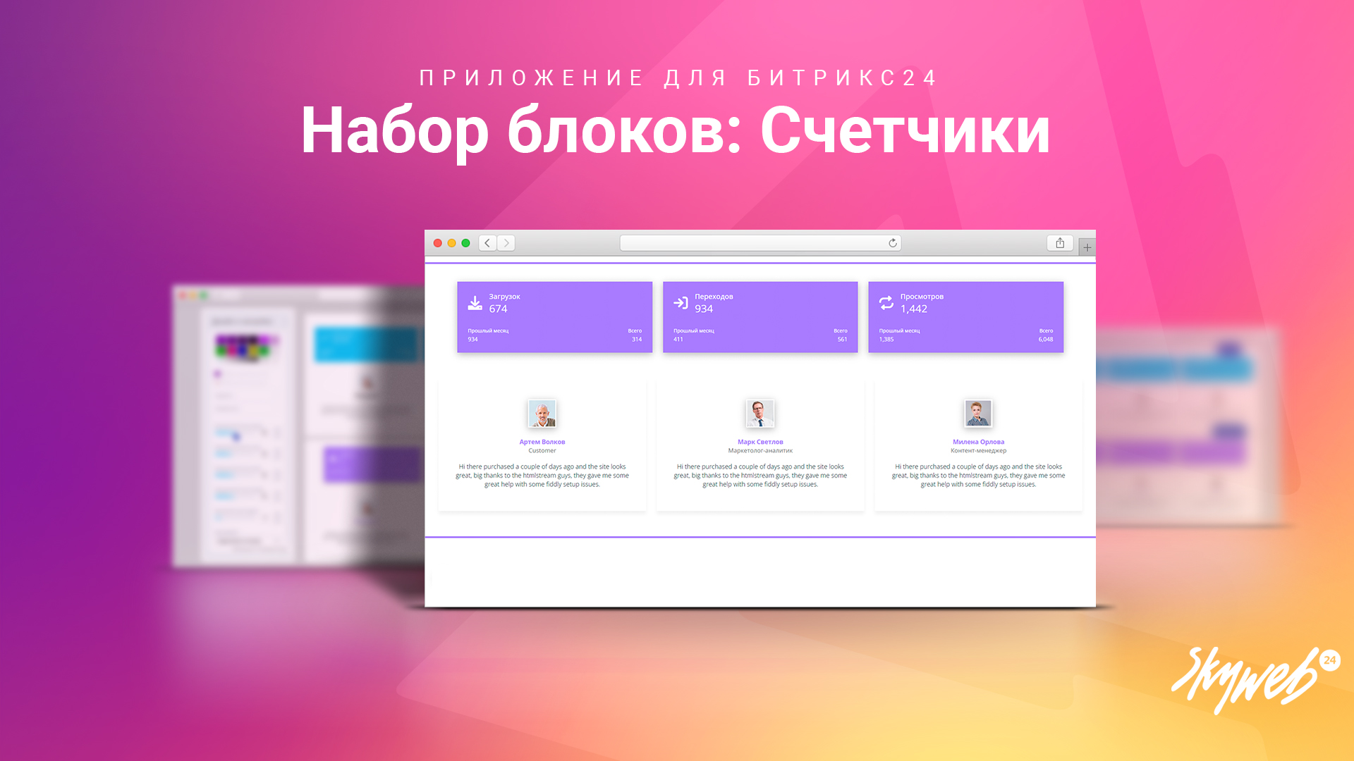 Наше приложение — это набор из 7 готовых блоков-счётчиков для сайтов на Битрикс24, готовых стать частью вашего сайта: