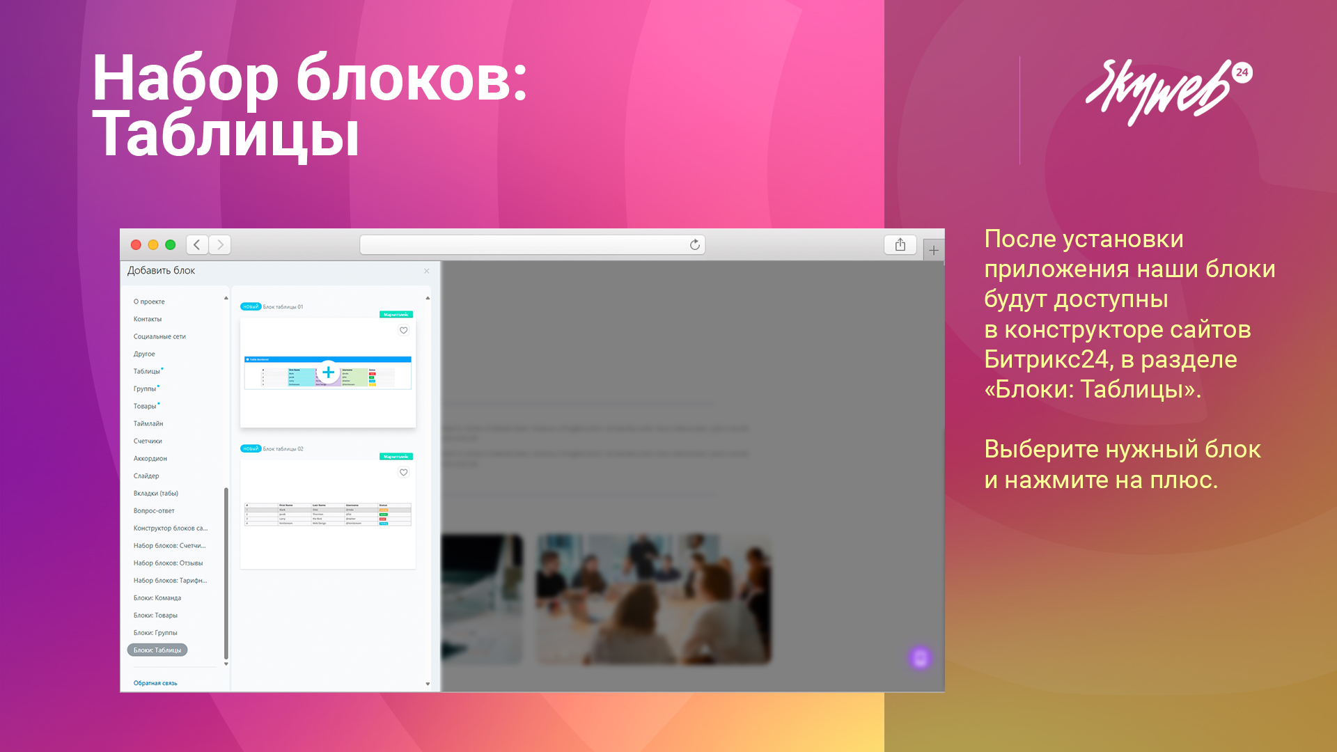 На основе этого набора можно создать свои блоки в Конструкторе блоков сайтов.