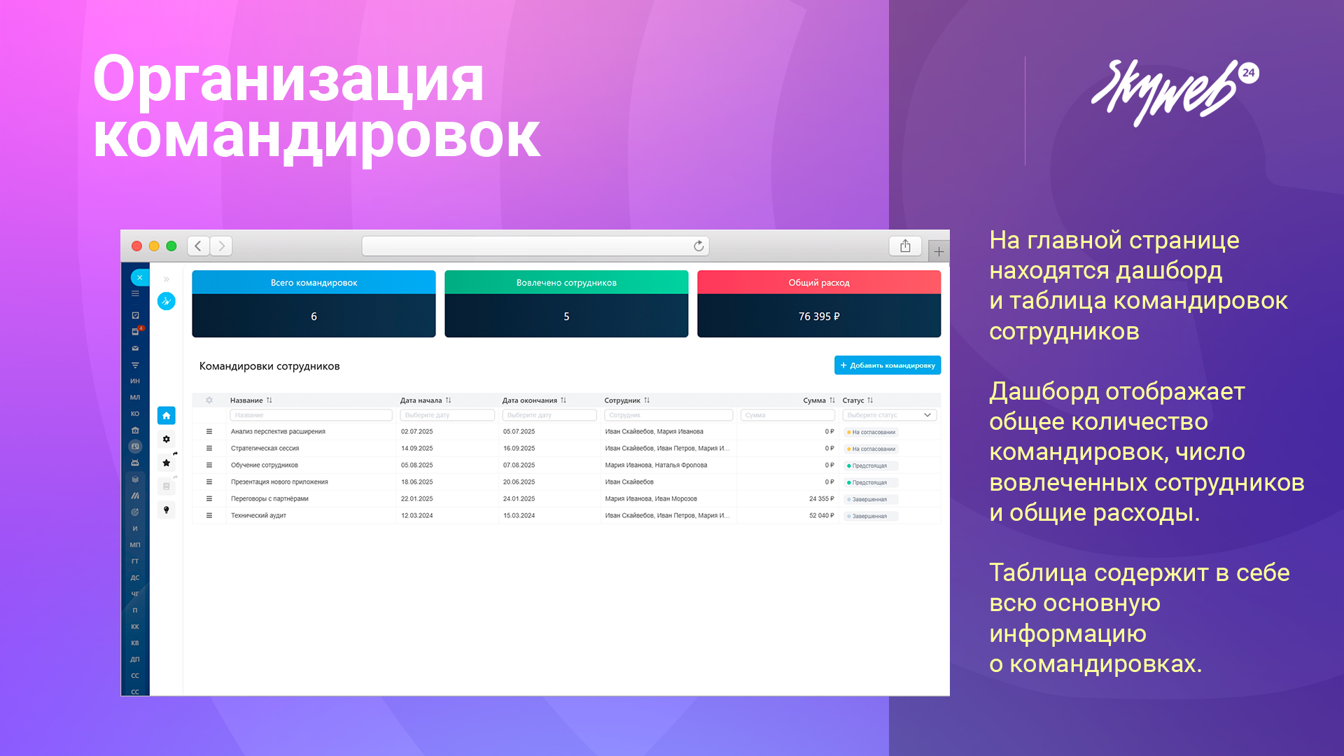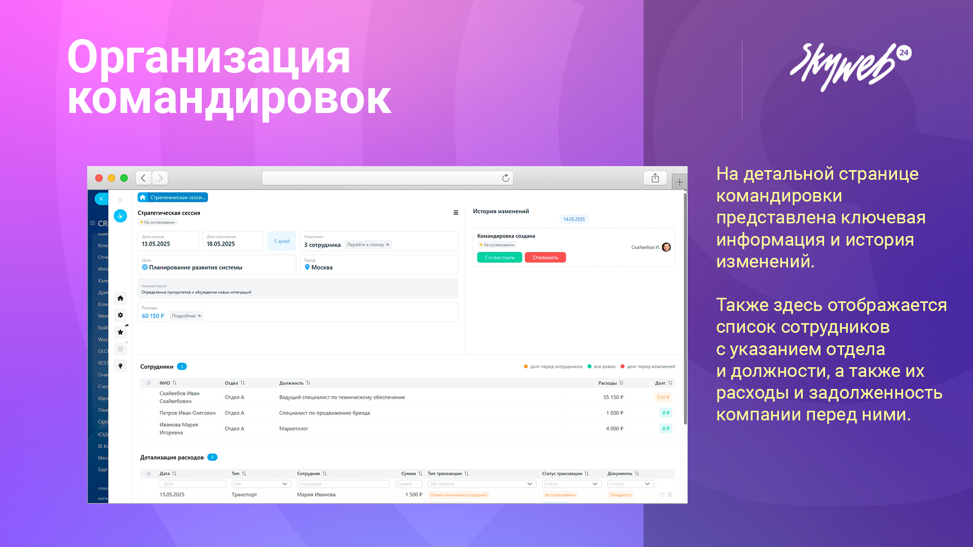 Автоматизируйте процесс согласования и учета командировок с удобством и прозрачностью.