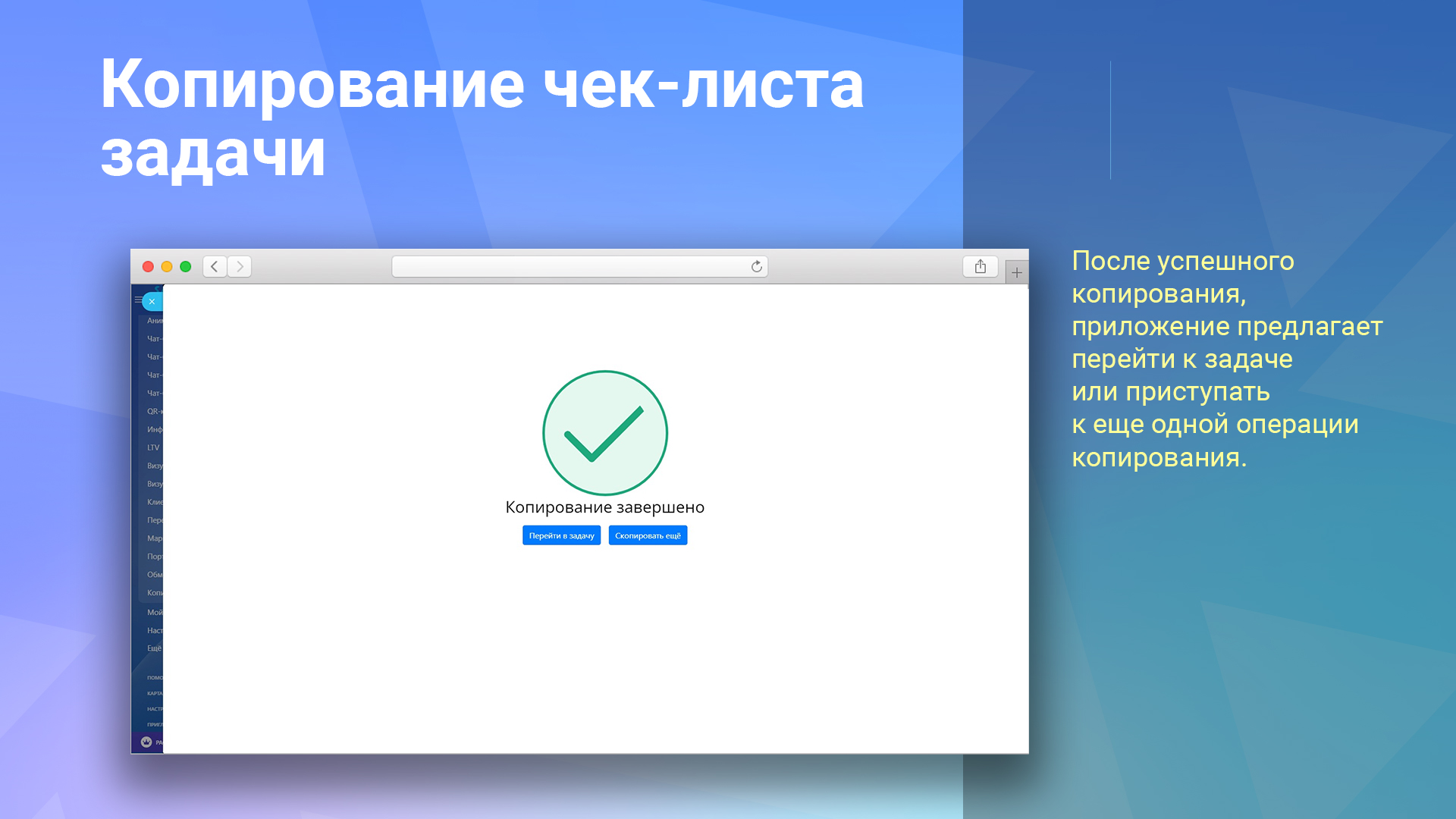 Приложение позволяет быстро и удобно копировать чек-листы из одной задачи в другую.