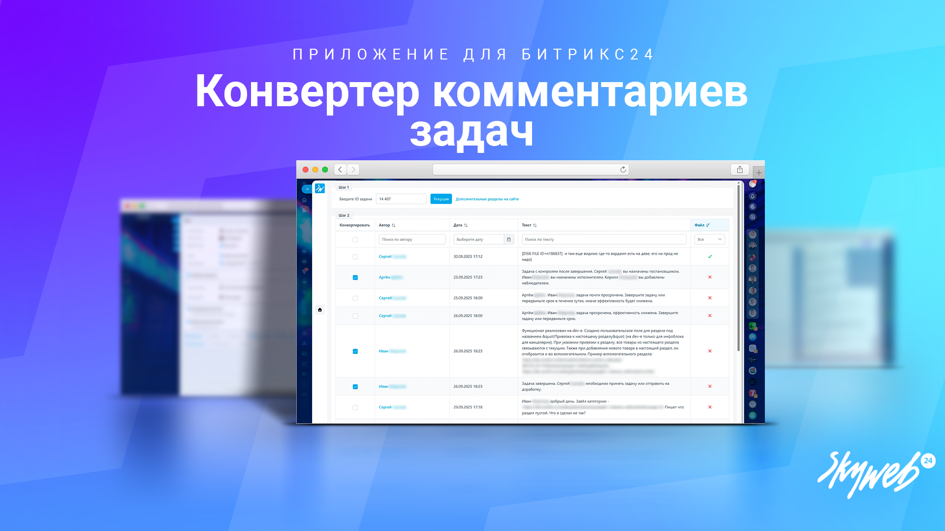 Выберите комментарии, которые требуется конвертировать и добавить в чат задачи.