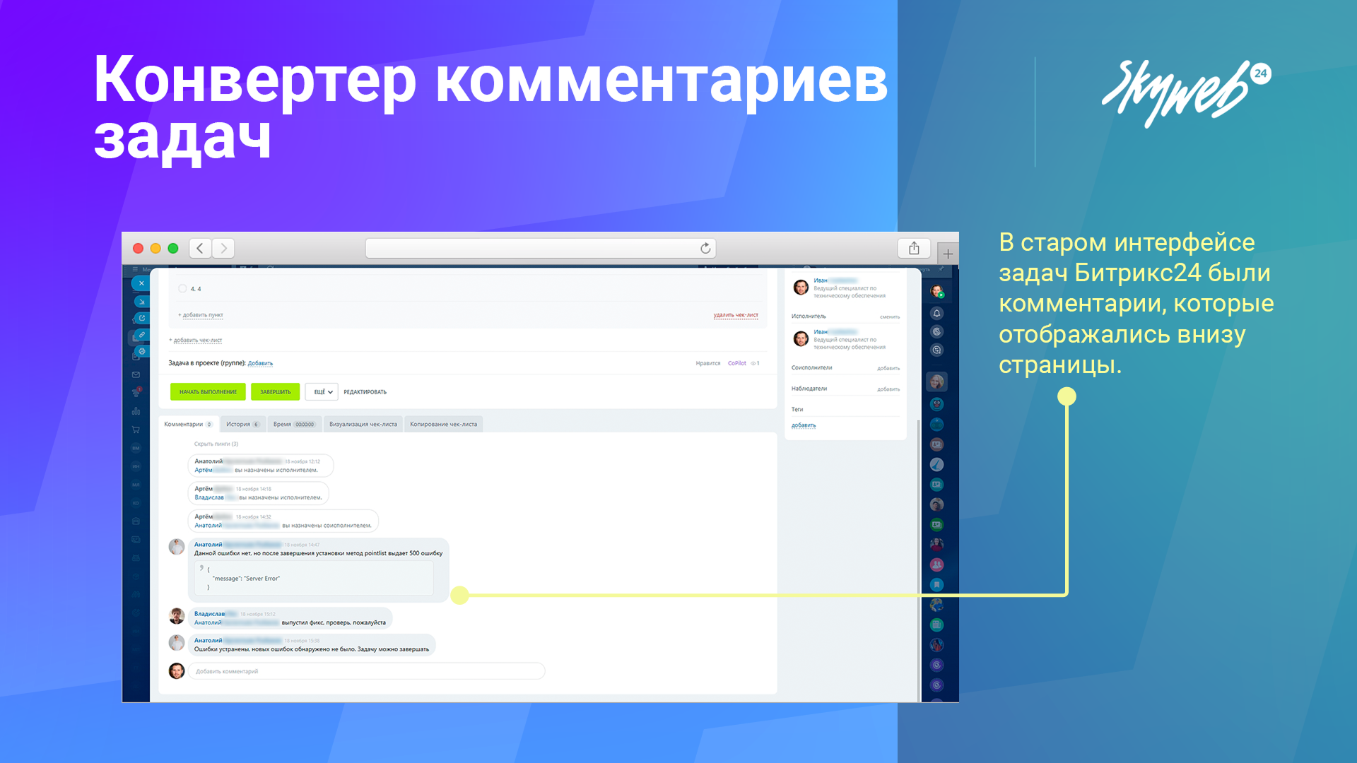 - В старом интерфейсе задач Битрикс24 были комментарии, которые отображались внизу страницы.