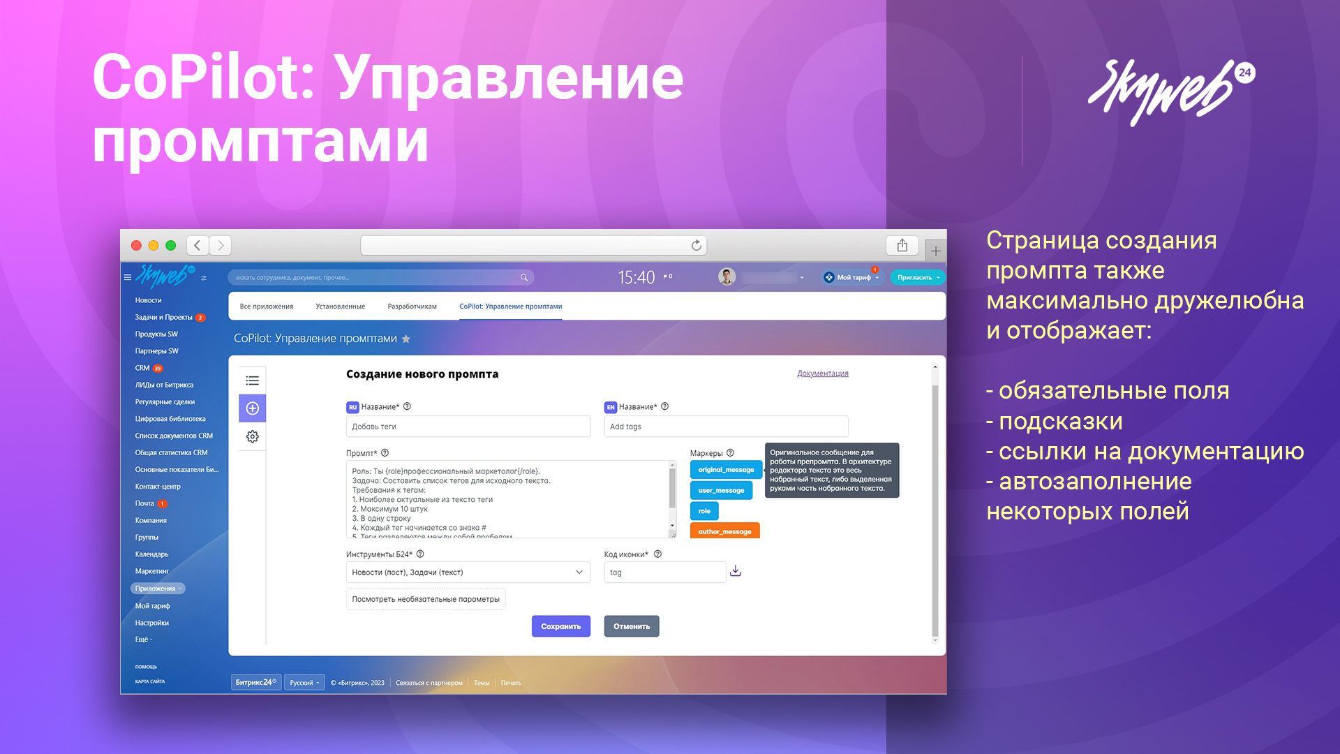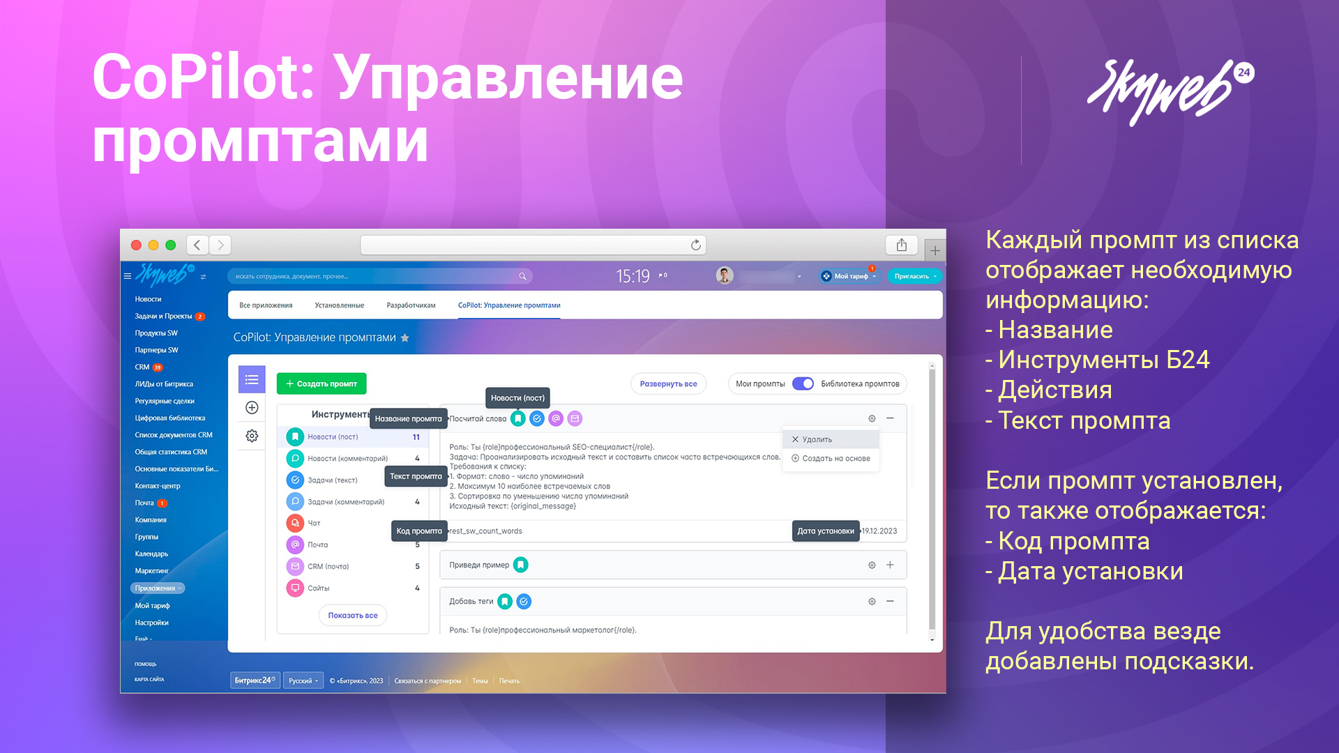 Установите приложение "CoPilot: Управление промптами" уже сегодня и начните использовать промпты для эффективной работы с CoPilot Битрикс24!