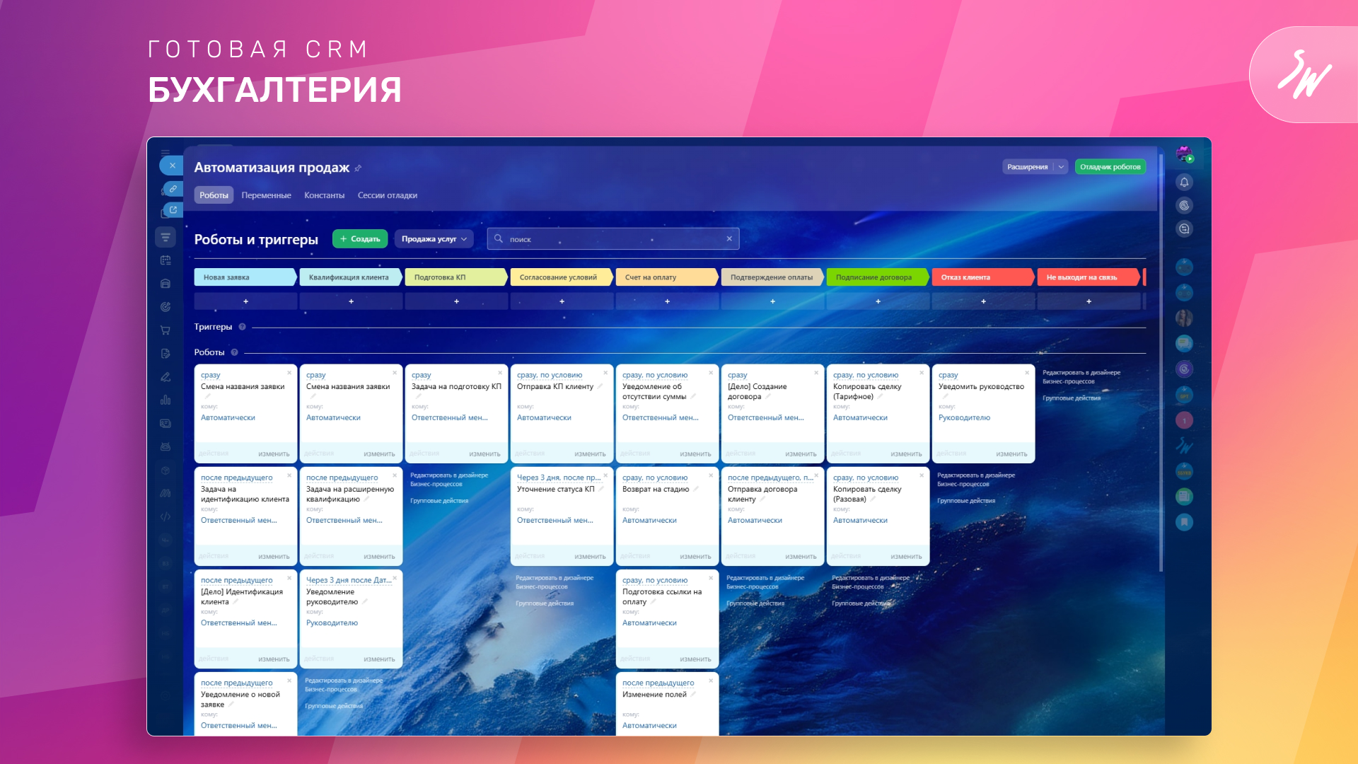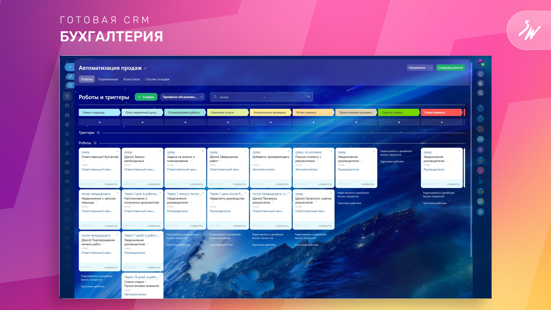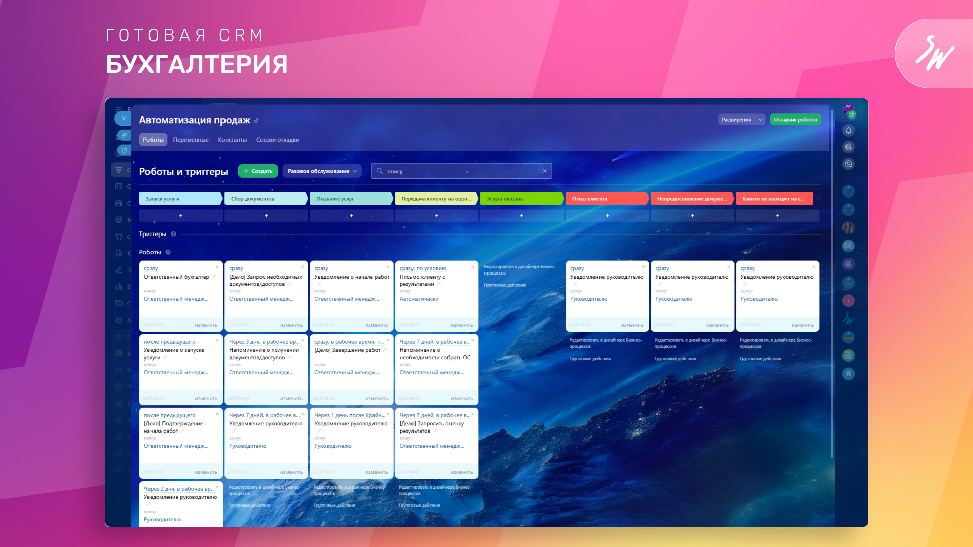 Юридические компании, оказывающие бухгалтерские услуги, часто сталкиваются с хаосом в процессах: неструктурированные воронки, разрозненные задачи и слабый контроль. Это приводит к ошибкам и потере клиентов.