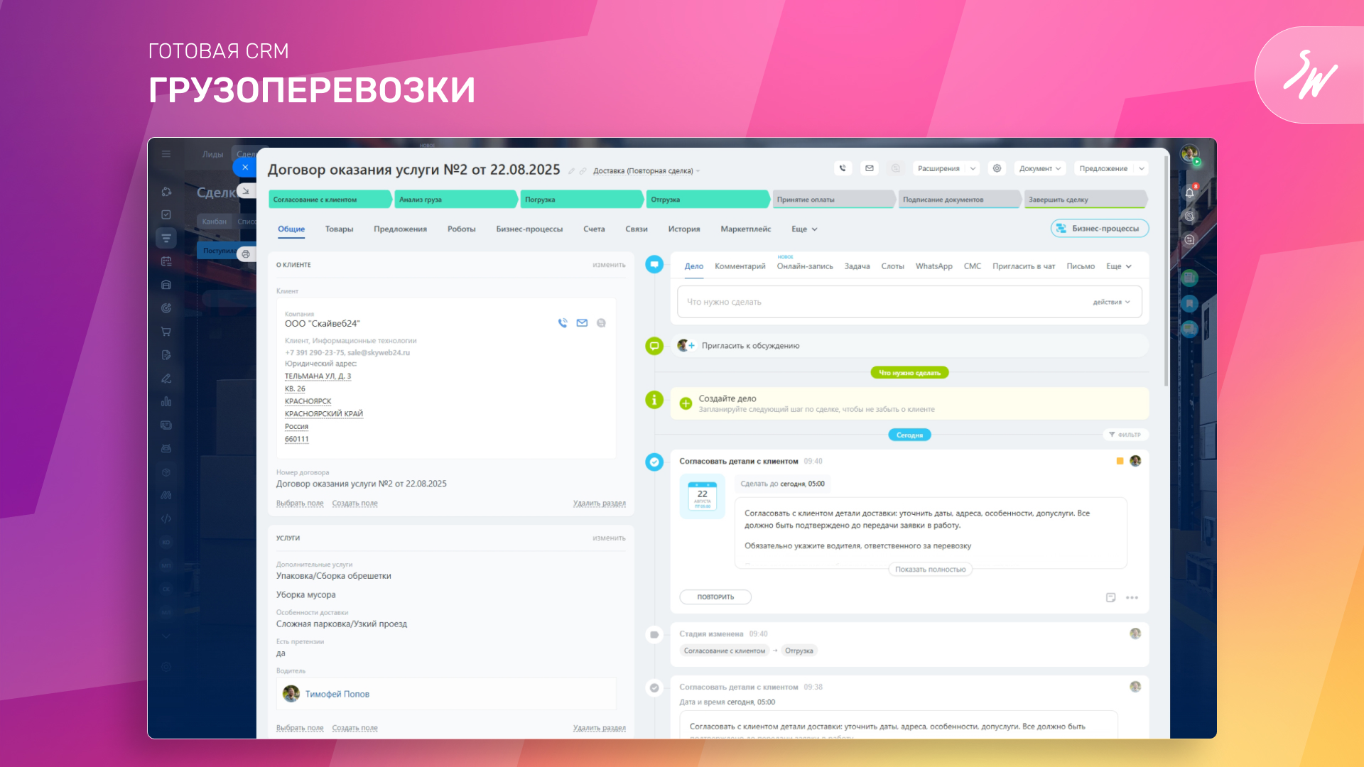 CRM: Грузоперевозки