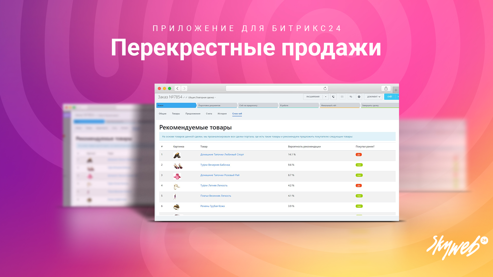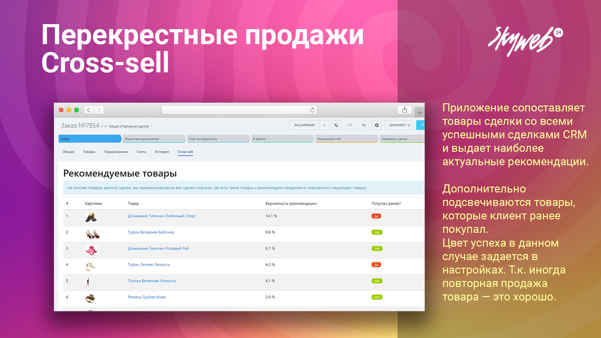 Выводите список рекомендаций товаров к текущей сделке с приложением "Перекрестные продажи"!