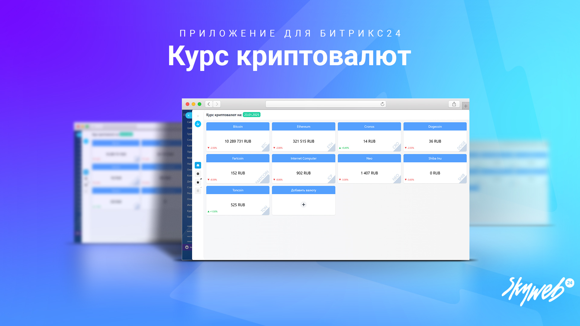 Обновляет курсы криптовалют в Битрикс24 на основе информации биржи с приложением "Курс криптовалют"!
