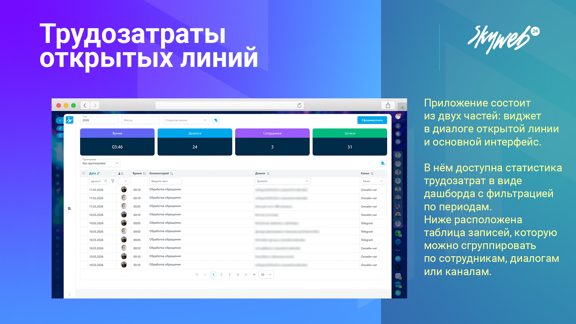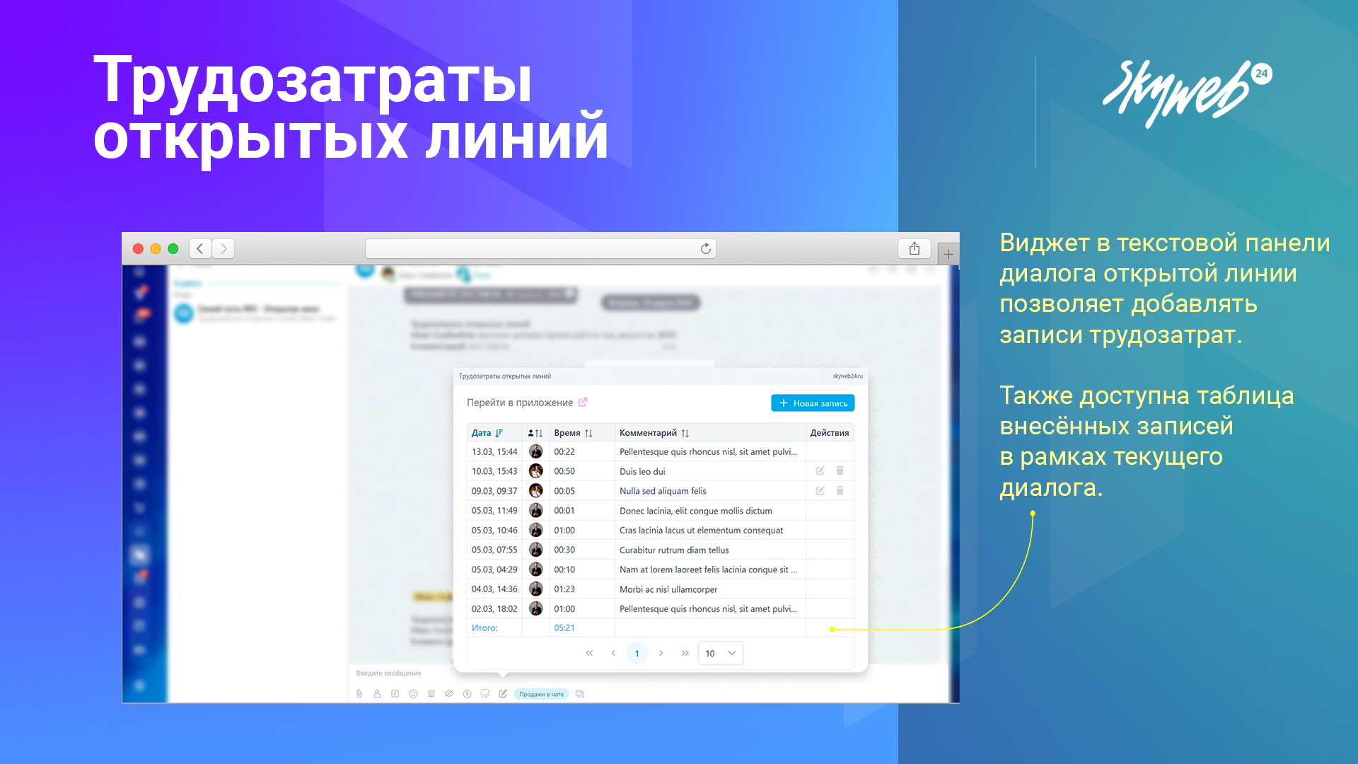 Фиксируйте трудозатраты прямо в чате открытых линий.