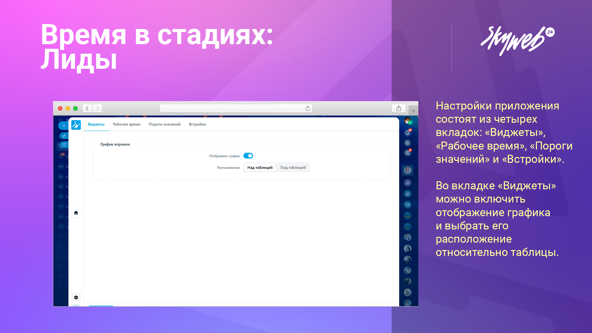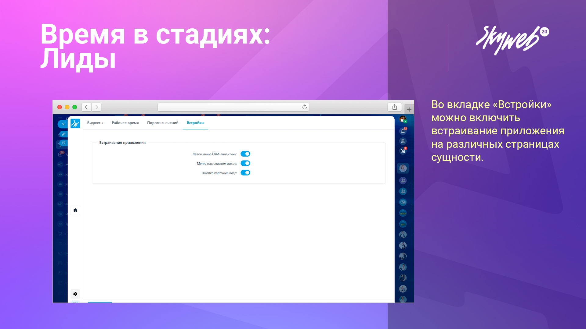 Приложение показывает, сколько времени лиды проводят на этапах, помогая выявить узкие места.