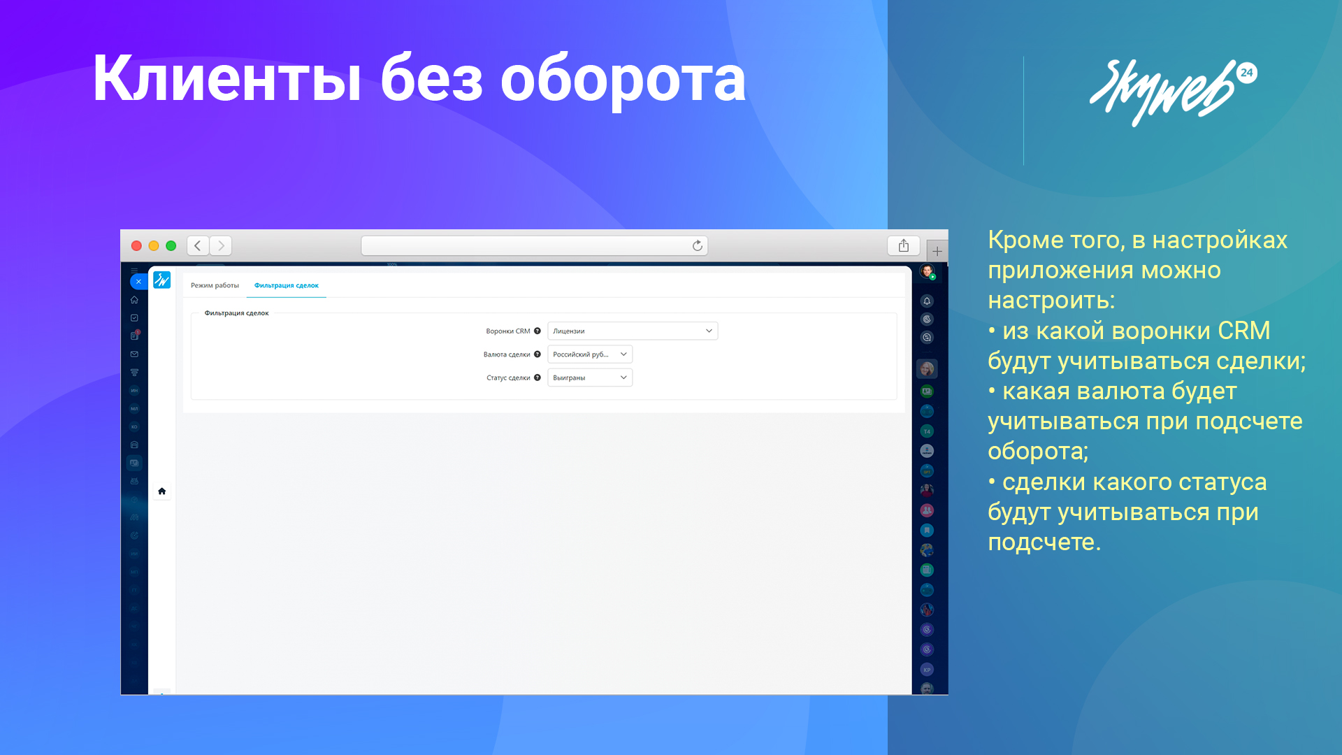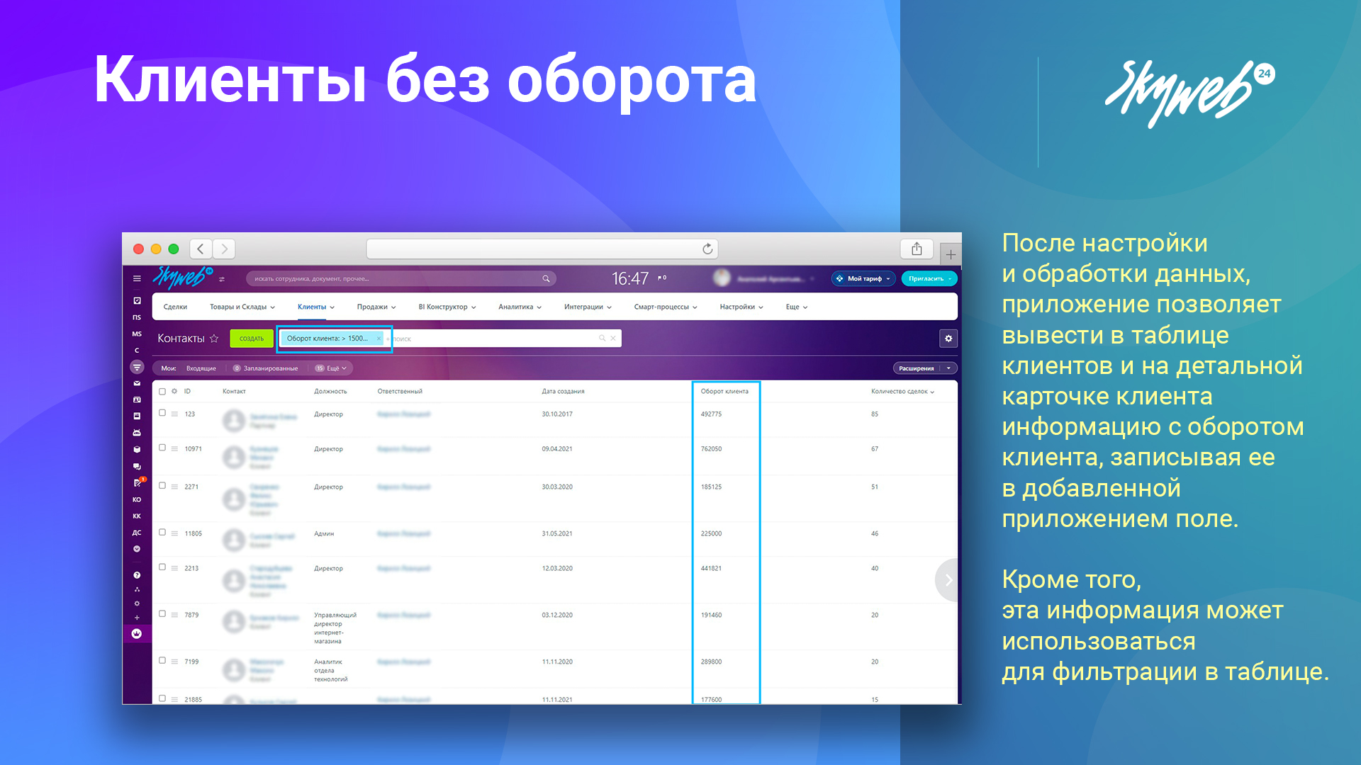 Приложение подсчитывает сумму сделок в CRM для каждого контакта и компании с приложением "Клиенты без оборота"!