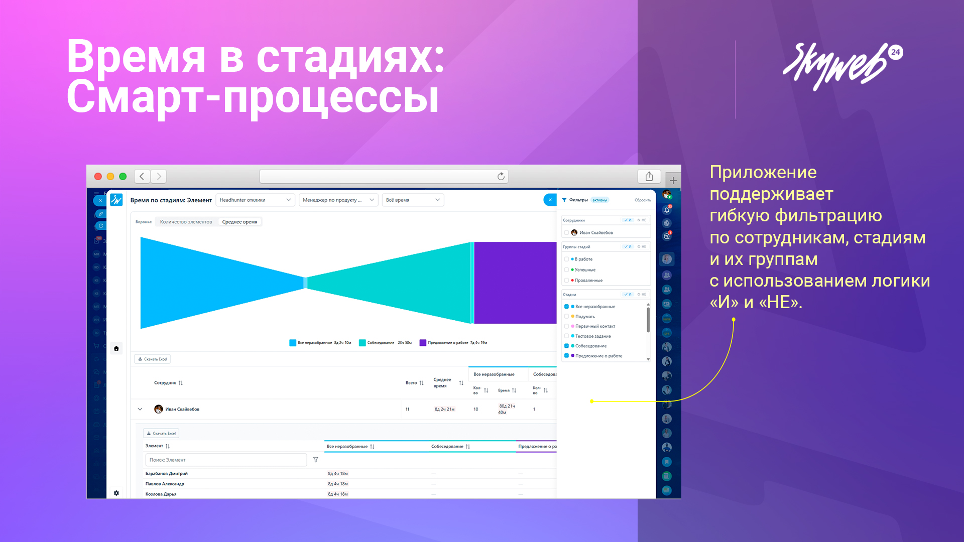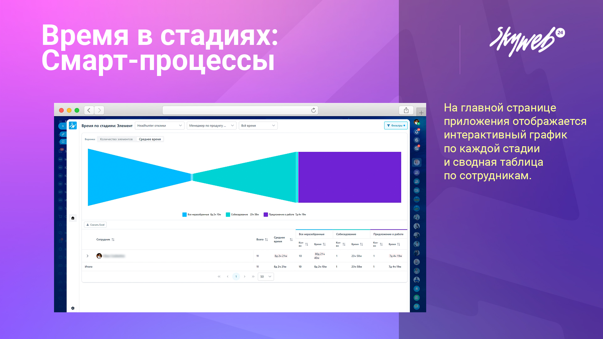 Забудьте о ручных отчётах и догадках - «Время смарт-процессов в стадиях с визуализацией» даст вам прозрачную картину работы сделок и поможет ускорить продажи.