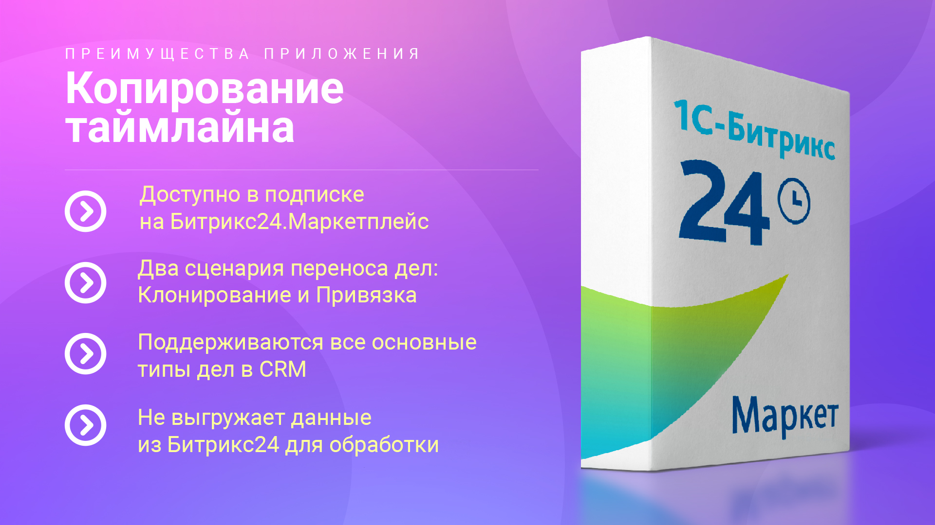 Хватит терять время на ручное копирование дел и рисковать потерей истории клиента. Установите «Копирование таймлайна» и перенесите дела CRM за пару кликов — быстро, удобно и без ошибок.