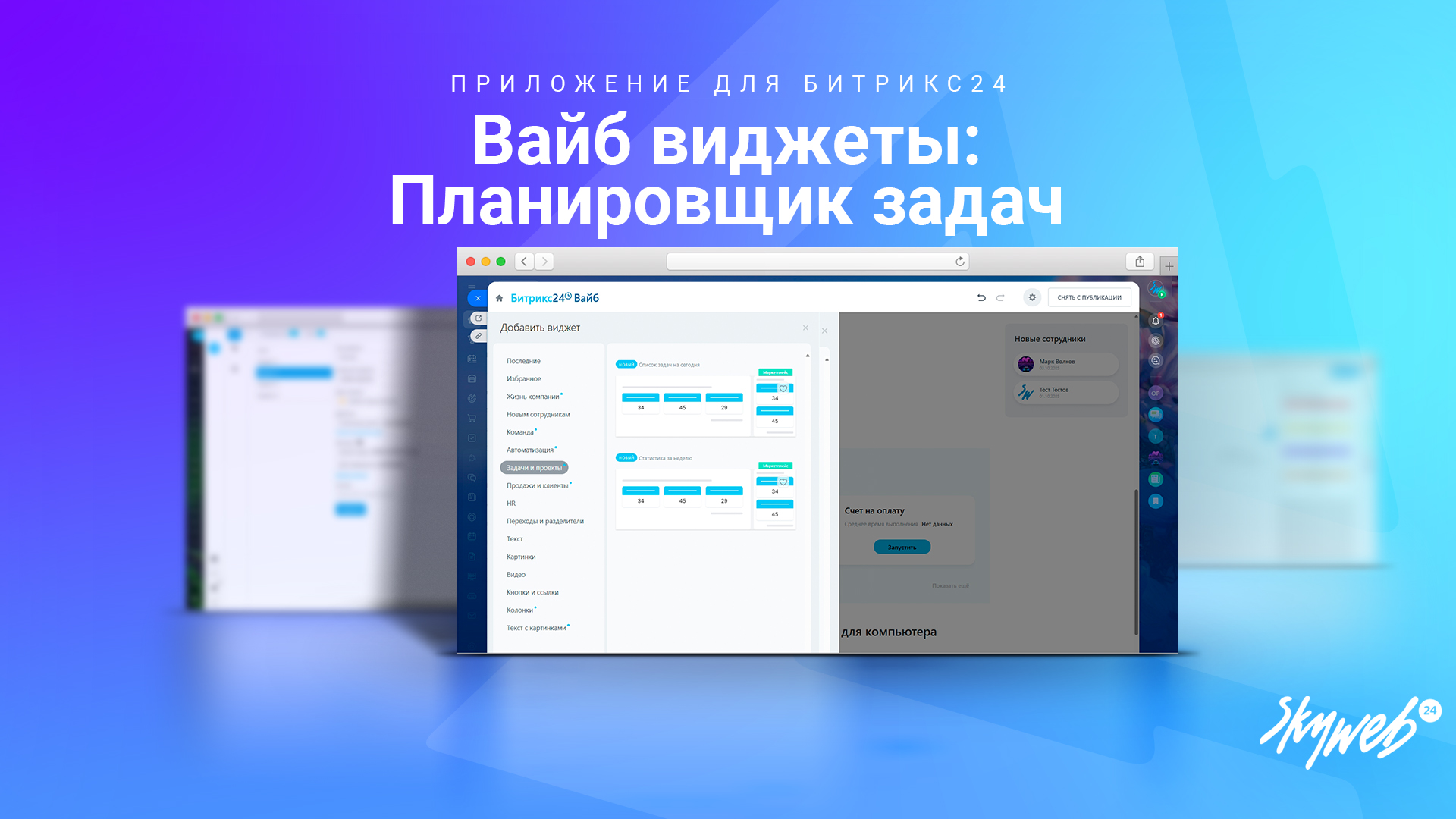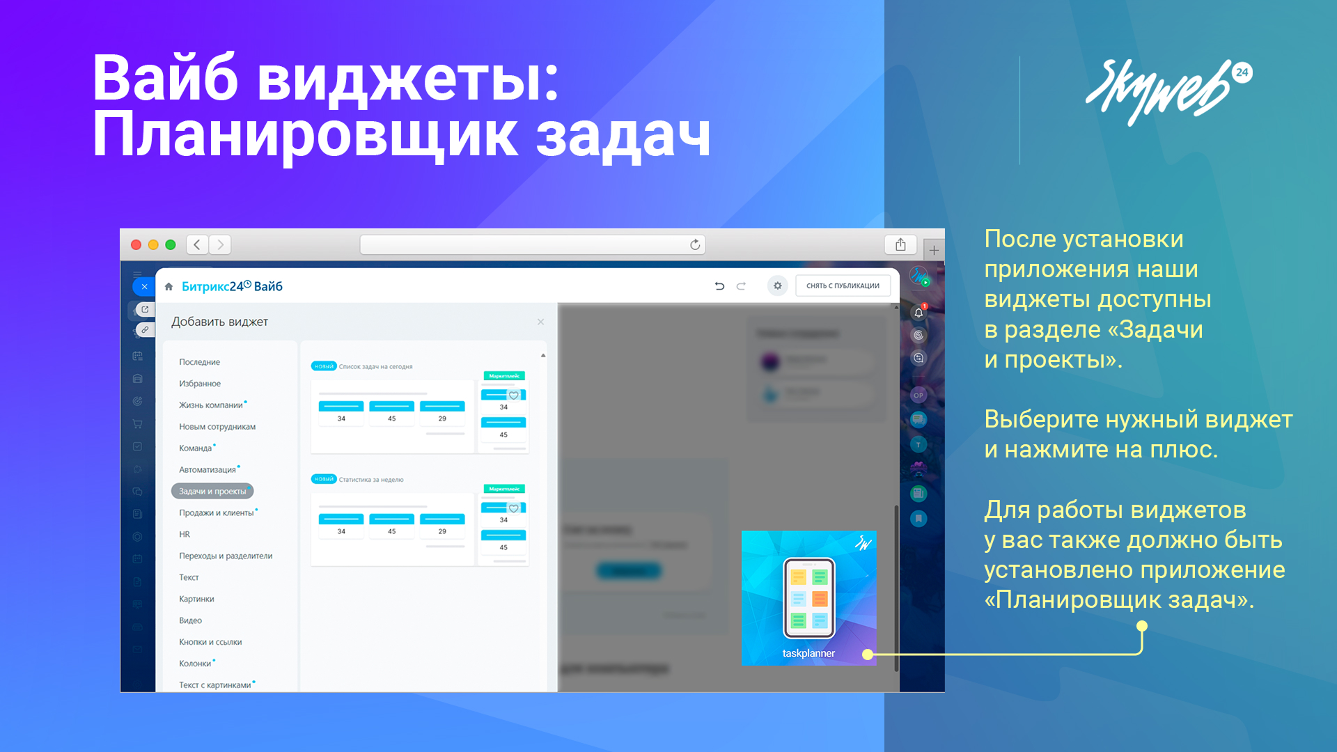 Наше приложение представляет собой набор готовых виджетов для главной страницы Битрикс24 (Вайб).