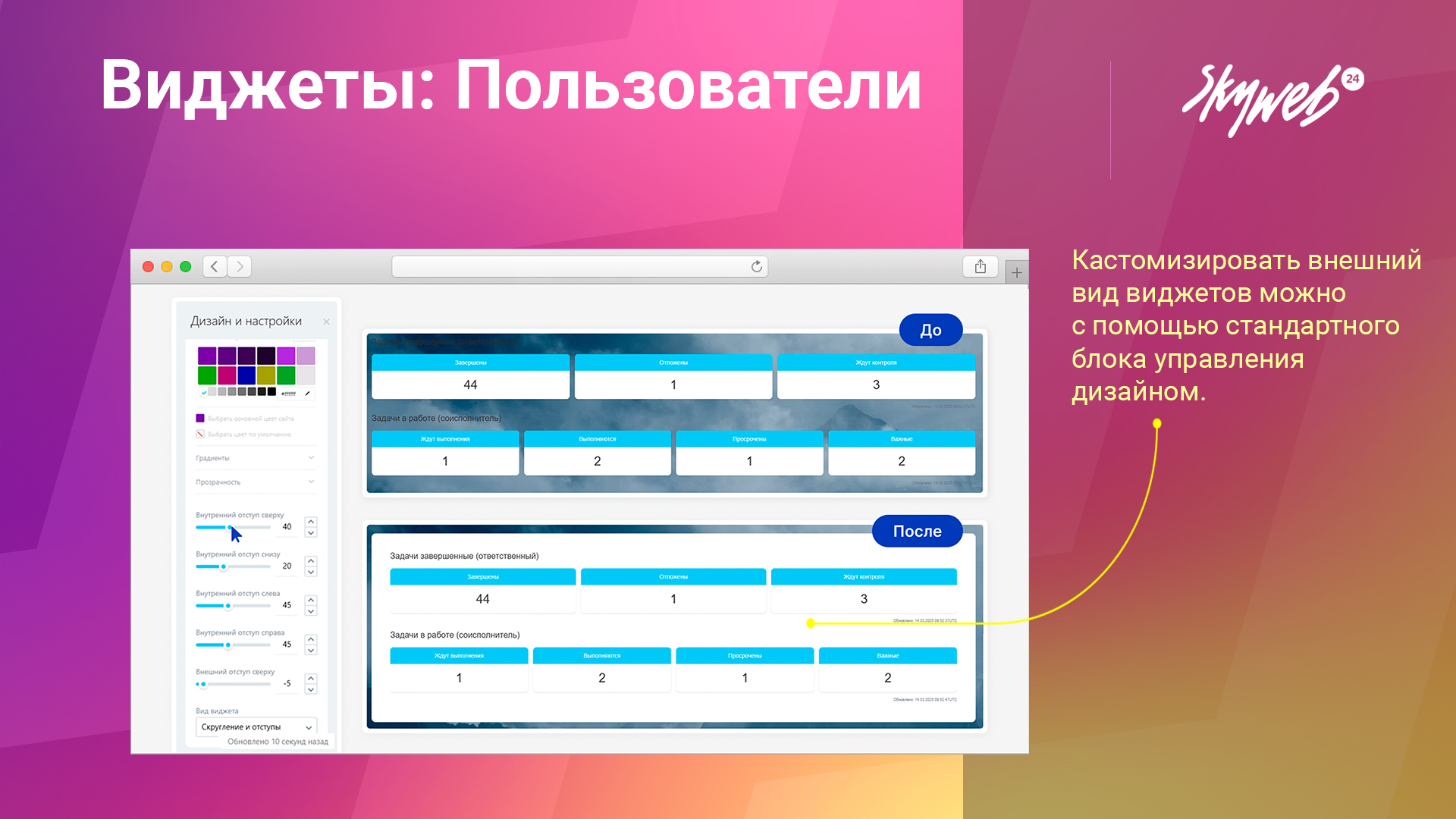 Виджеты из набора можно использовать для создания персонализированных виджетов с помощью «Конструктора виджетов».