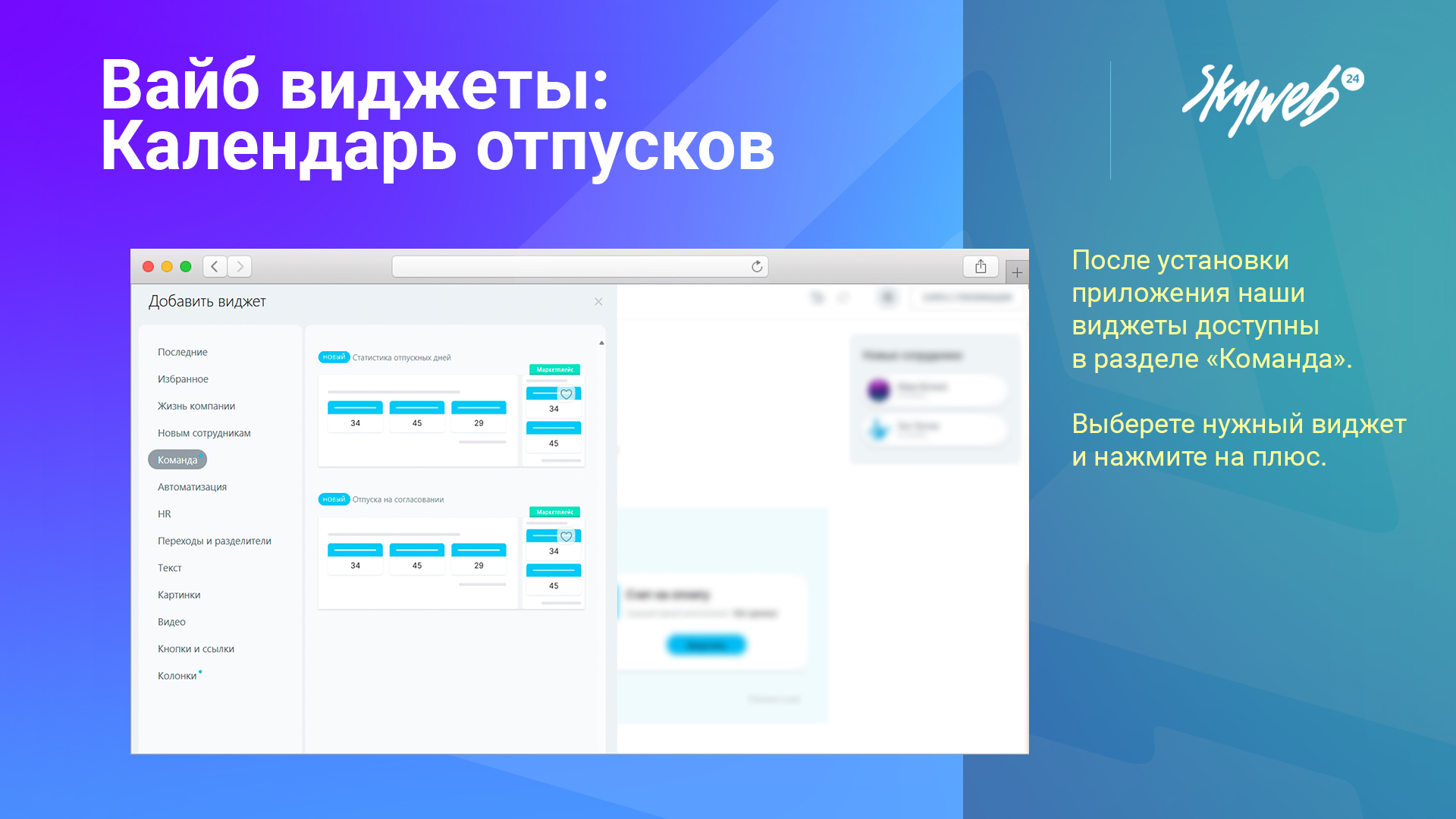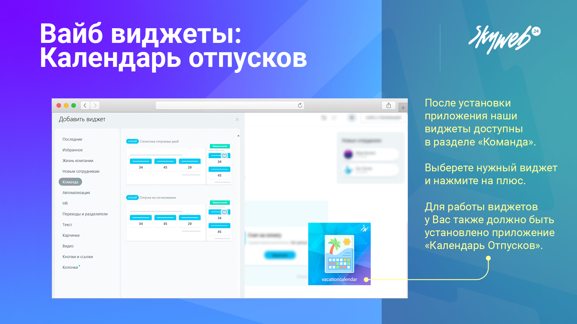 Виджеты из набора можно использовать для создания персонализированных виджетов с помощью «Конструктора виджетов Вайба».
