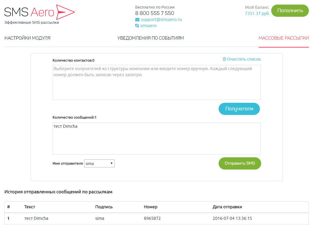 Данный модуль позволяет автоматически отправлять SMS при определенном событии в вашей CRM: новый лид, изменение статуса лида, создание задачи и т.п. С его помощью вы сможете совершать массовые SMS-рассылки о изменении встречи или переносе собрания выбранным группам сотрудников.