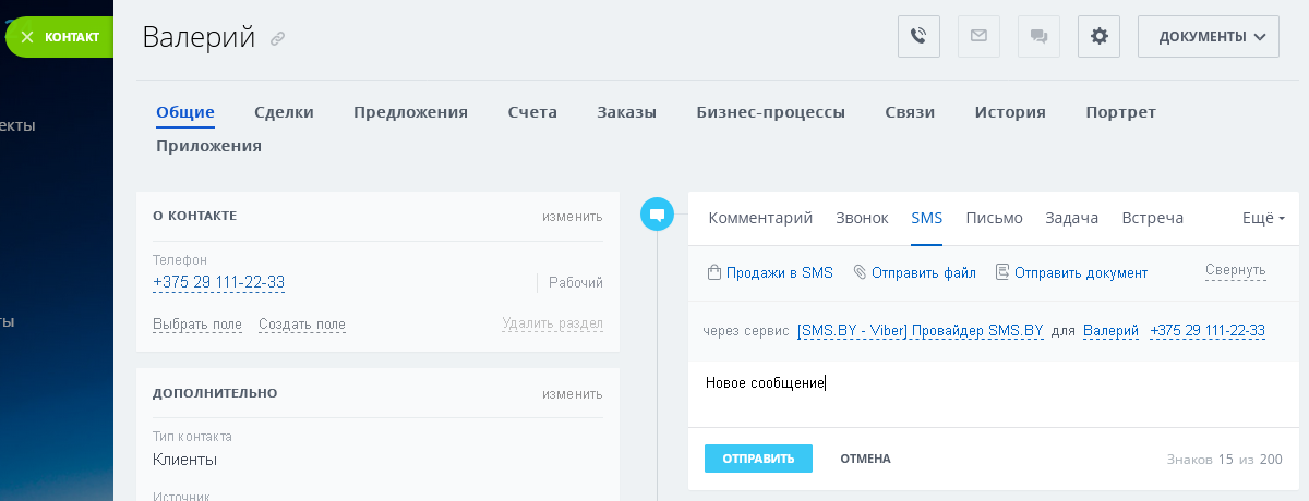 С его помощью вы можете осуществлять отправку Viber-сообщений напрямую через сервис SMS.BY, не покидая привычный интерфейс Битрикс24.