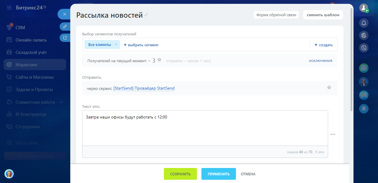Сервис SMS рассылок в России, СНГ и по всему миру. Автоматизация смс-рассылок/оповещений.