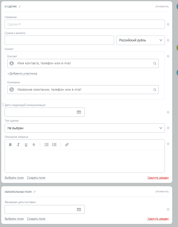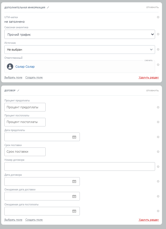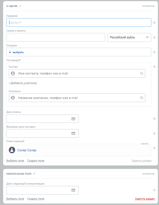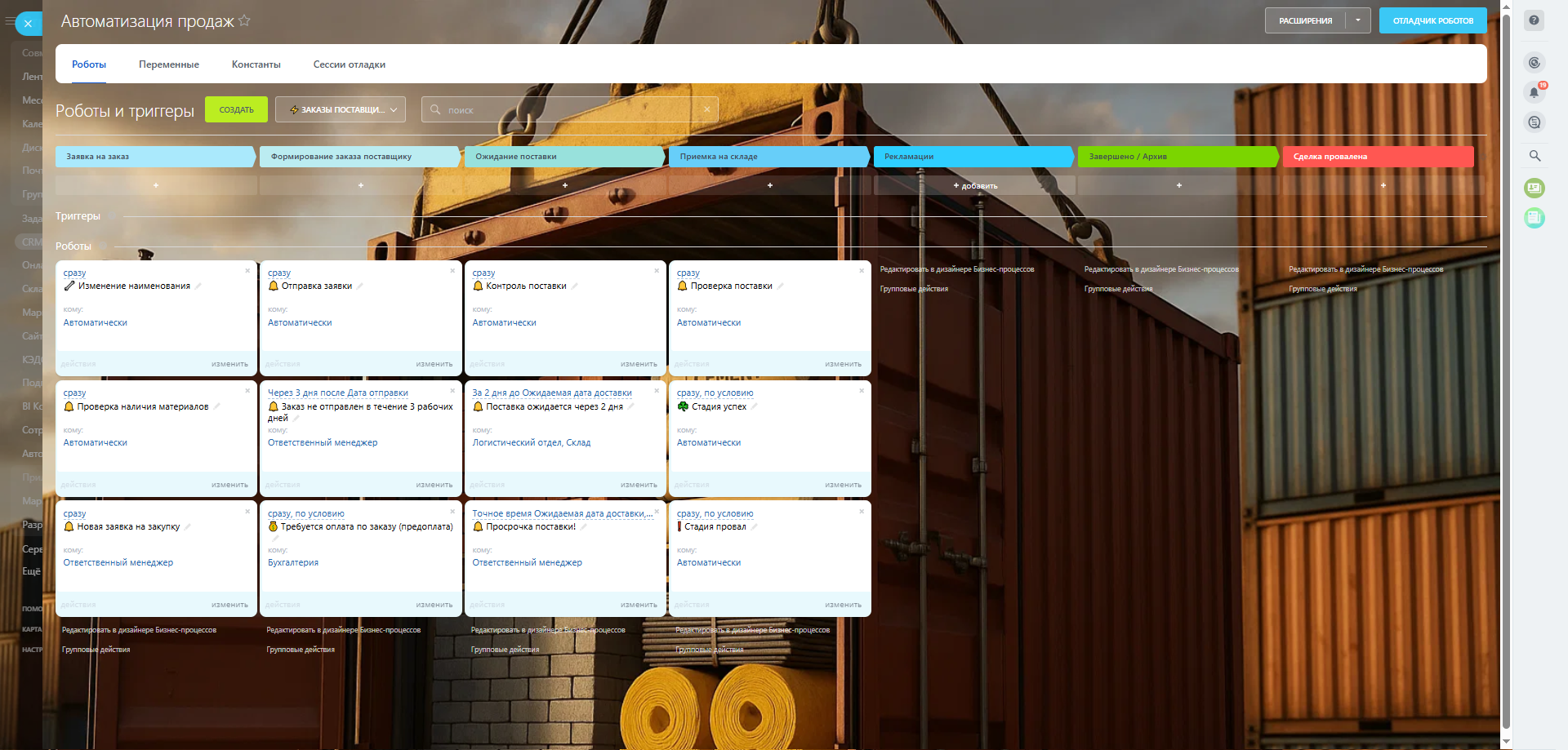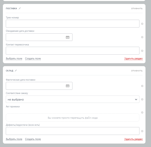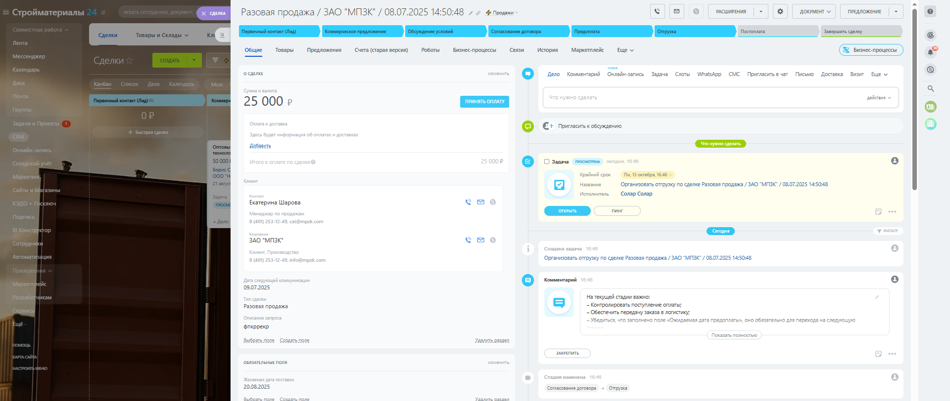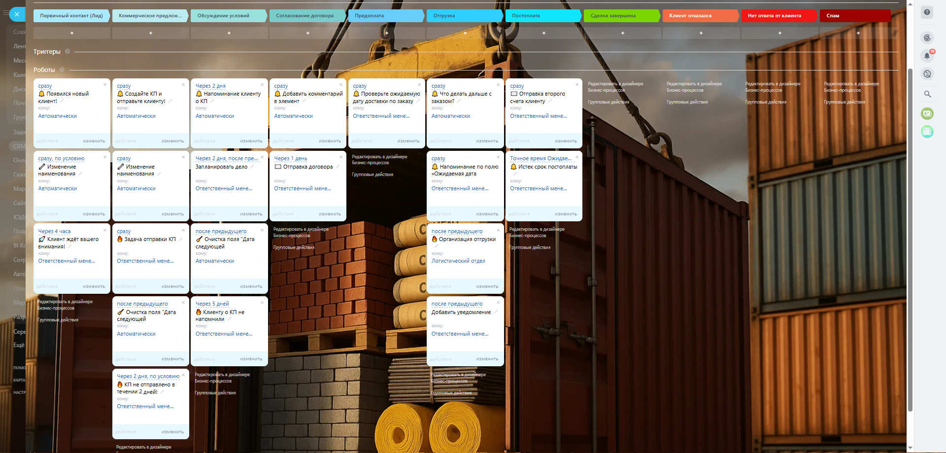 - CRM-воронка: "Отгрузки" - нужна для эффективного управления процессом доставки материалов.