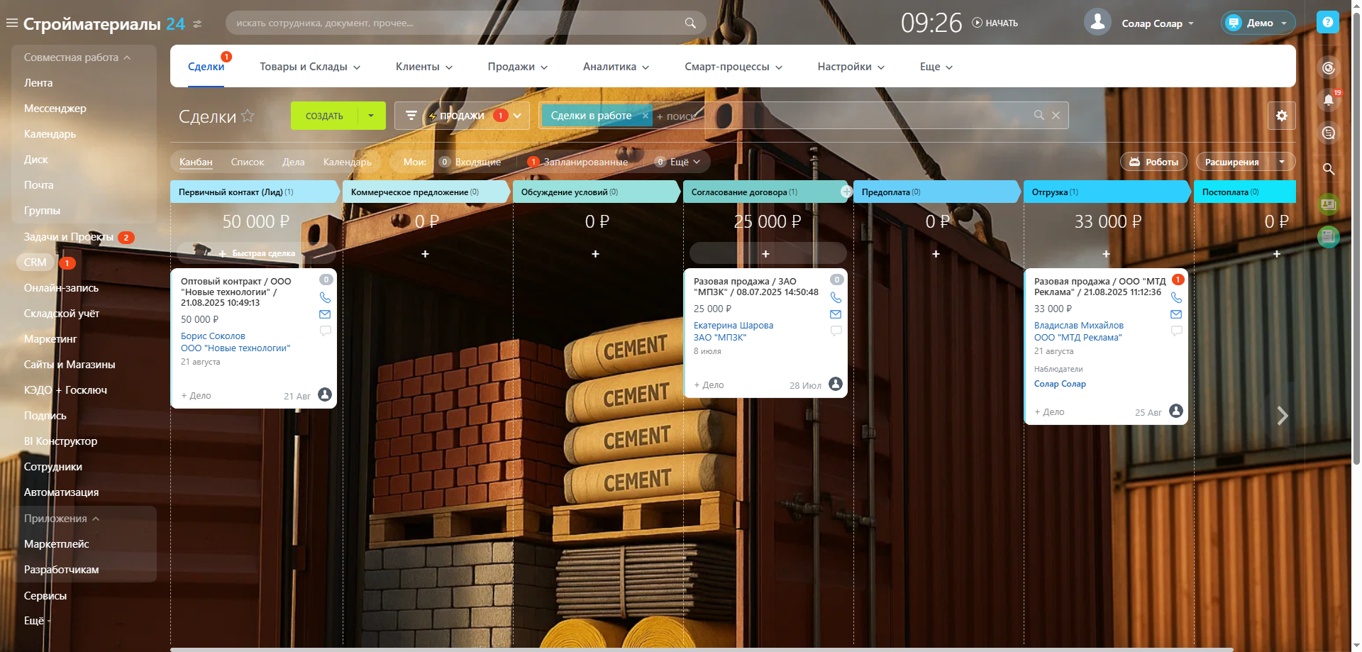 CRM для оптовых продаж стройматериалов - это незаменимый помощник, который структурирует процессы закупок, повышает прозрачность бизнеса и автоматически снижает издержки. Выбирая такую CRM, компания инвестирует в стабильность и эффективность своей работы. Данное CRM-решение оптимально подходит для компаний, занимающихся оптовой и розничной торговлей стройматериалами, строительными бригадами и дилерами, которые хотят систематизировать работу с клиентами.
