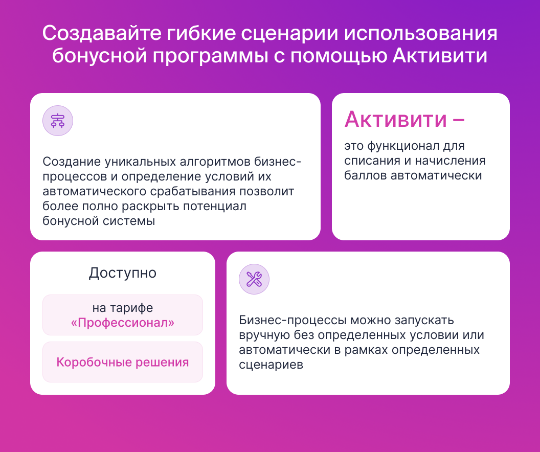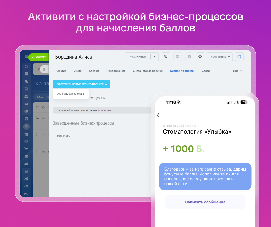 5. Вы можете установить активити для бизнес-процессов и начислять баллы вашим клиентам прямо из Битрикс24.