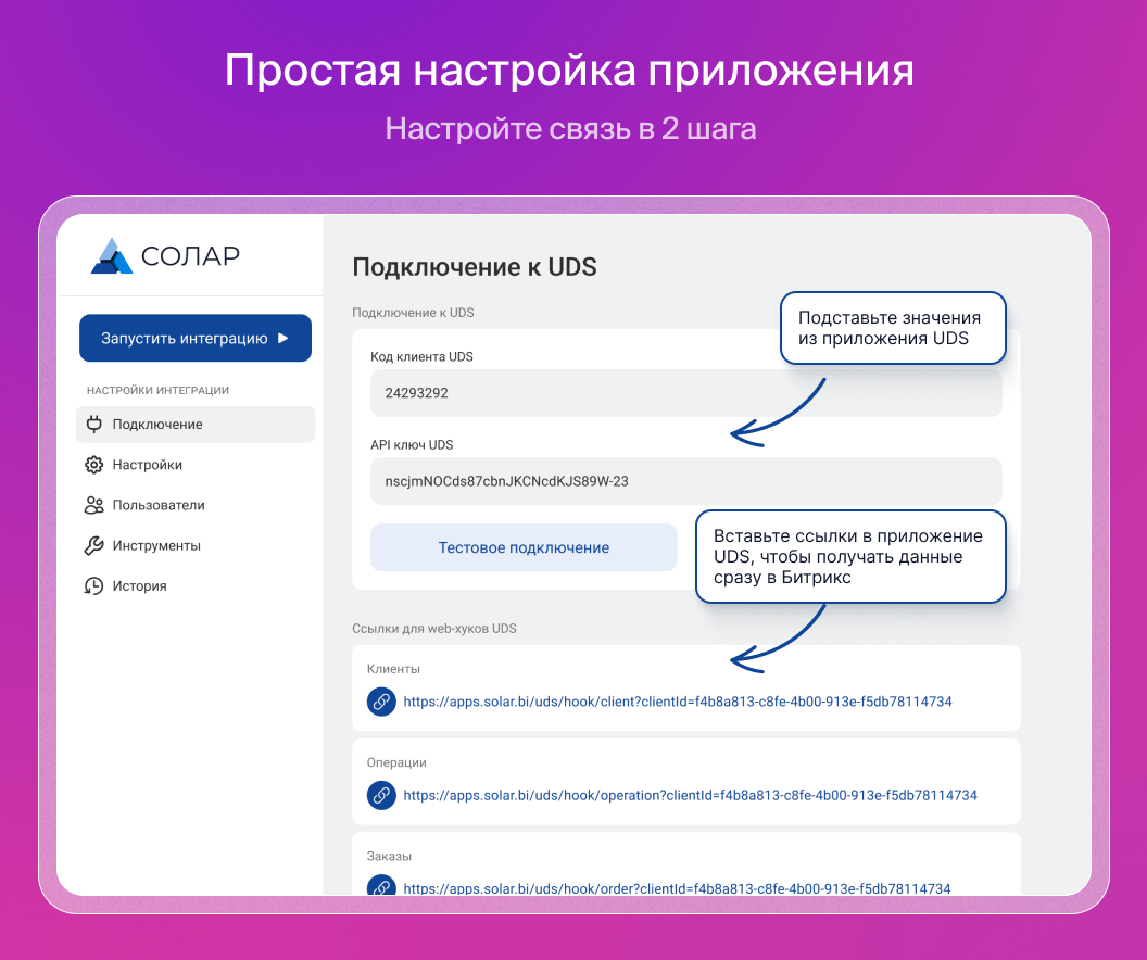 1. Синхронизация клиентской базы UDS и Битрикс24 онлайн. Неважно, как попадет к вам клиент, зарегистрируется самостоятельно или придет по рекомендации - он отобразится в базе.