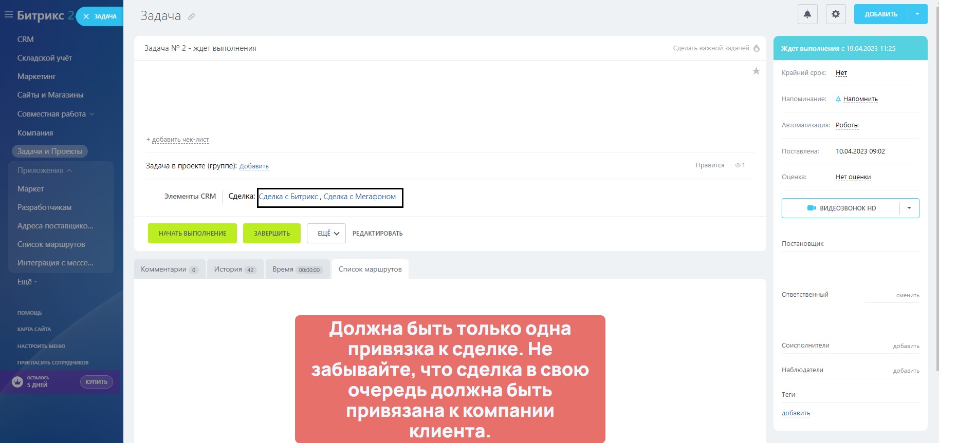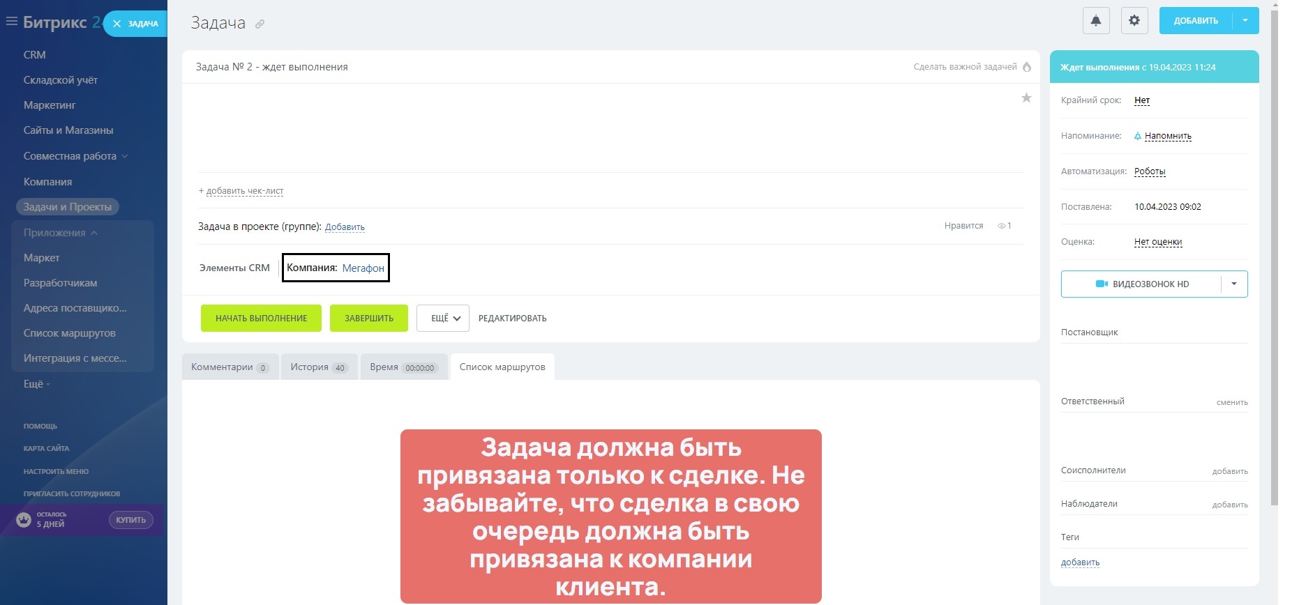 Приложение встраивается в карточку сделки (сделка должна быть привязана к компании) и в карточку задачи (задача должна быть прикреплена к сделке, которая в свою очередь привязана к компании).
