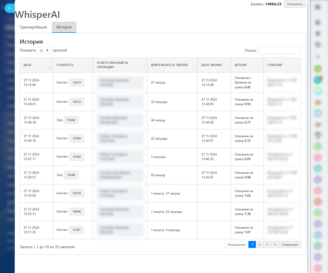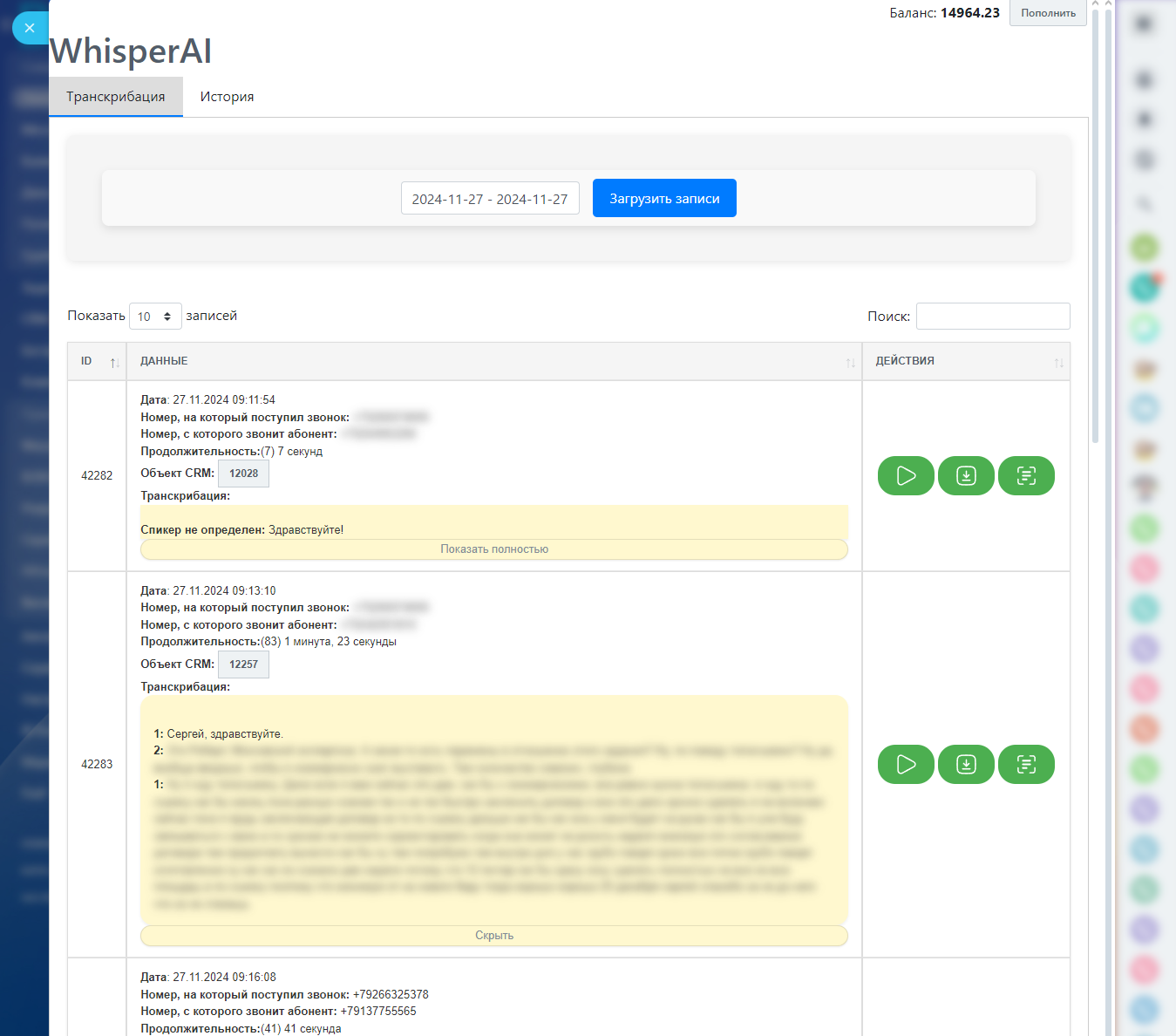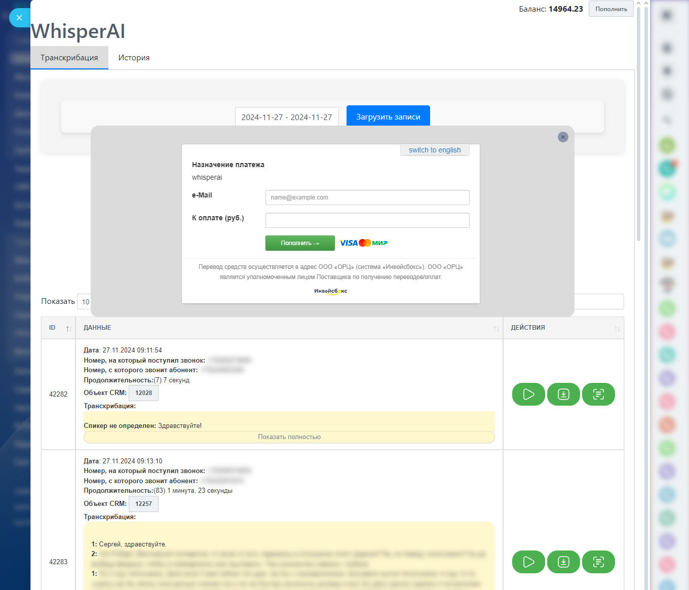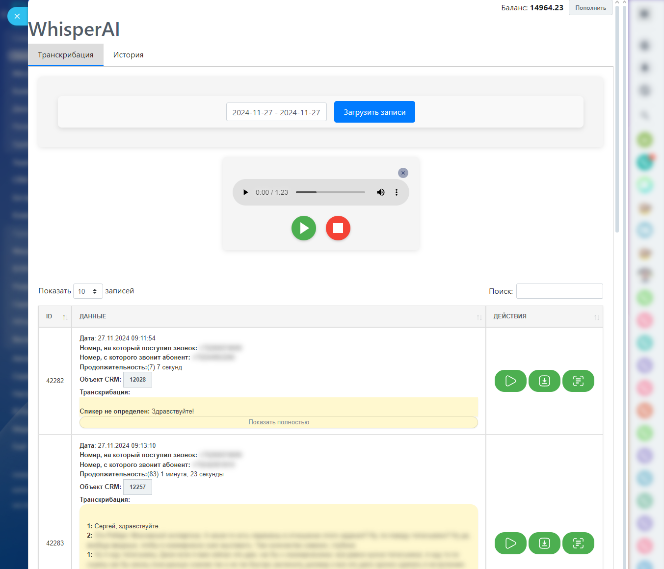 WhisperAI – распознавание телефонных разговоров и аудиозапией (транскрибация). Российский сервис.