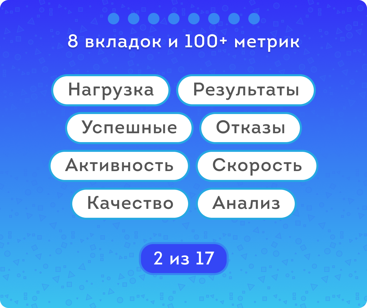 Что влияет на объем работы?На вкладках Нагрузка, Результаты, Успешные, Отказы, Активность, Скорость помимо основных метрик доступны следующие срезы: