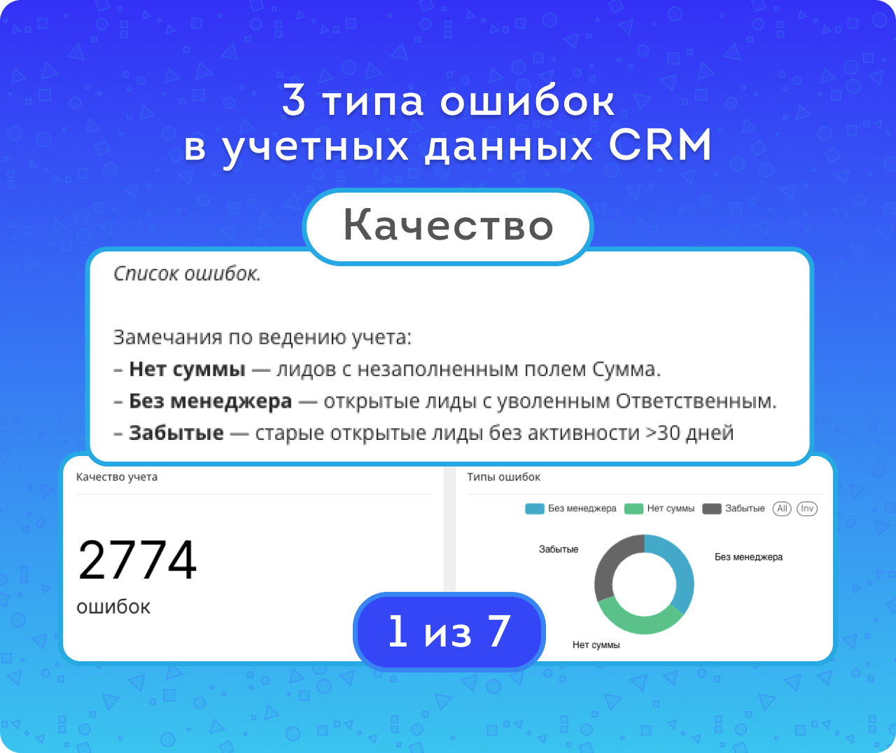 и метрикам Качества (Без менеджера / Забытые / Нет суммы / Поздний и ранний срок / Без ошибок).