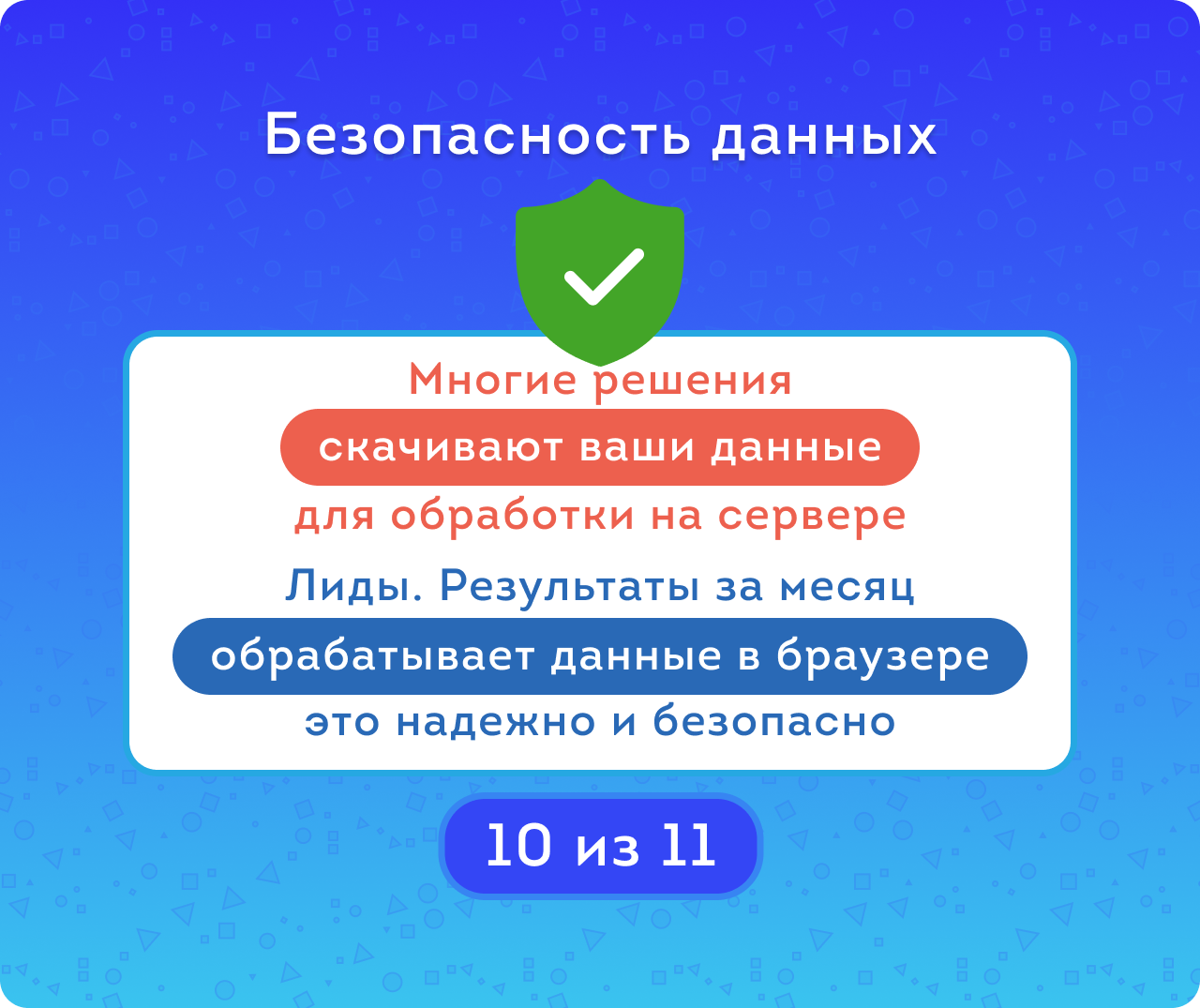 Лиды. Результаты за месяц — это отчёт, который переводит аналитику лидов из плоскости «сколько в работе» в плоскость денег, конверсий и эффективности. А в Отчёте PRO Лиды находится еще больше полезных метрик для руководителей.