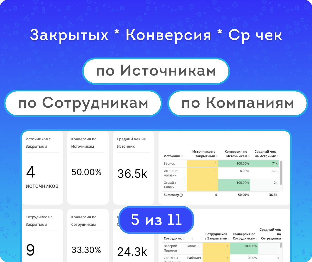 Это поможет выявить слабые каналы привлечения, заметить системные ошибки в контроле менеджеров и понять, где нужно вмешательство.