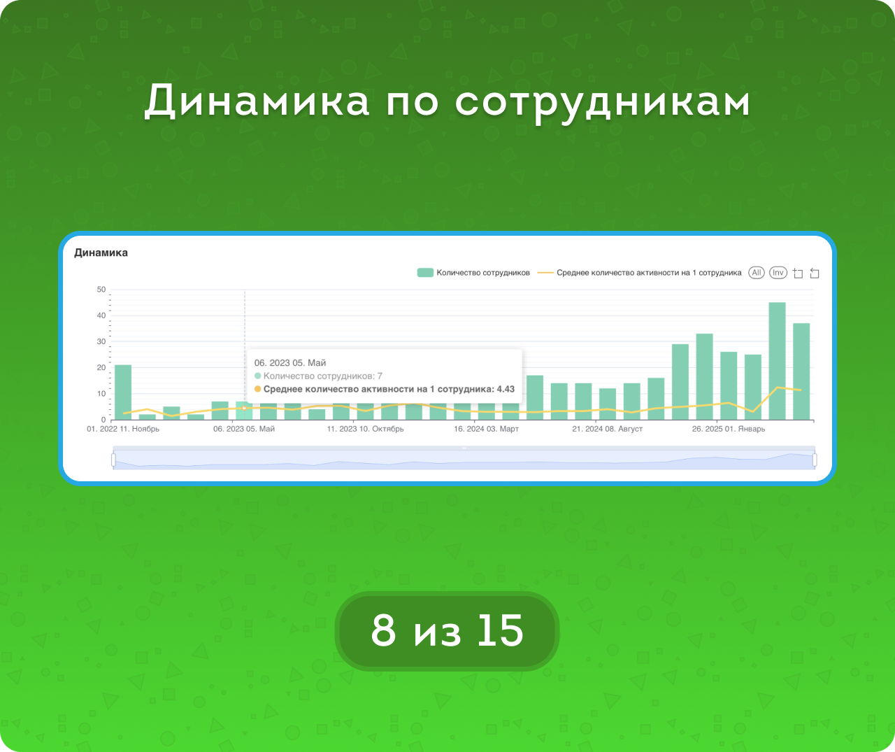 Вкладка «Сотрудники» включает в себя следующие метрики:
